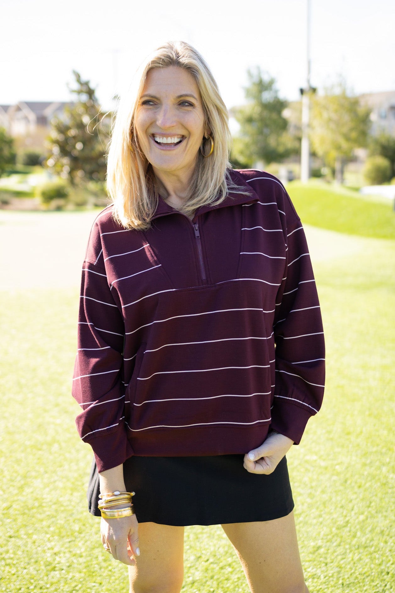 Stay Ready Pullover, Maroon/Cream