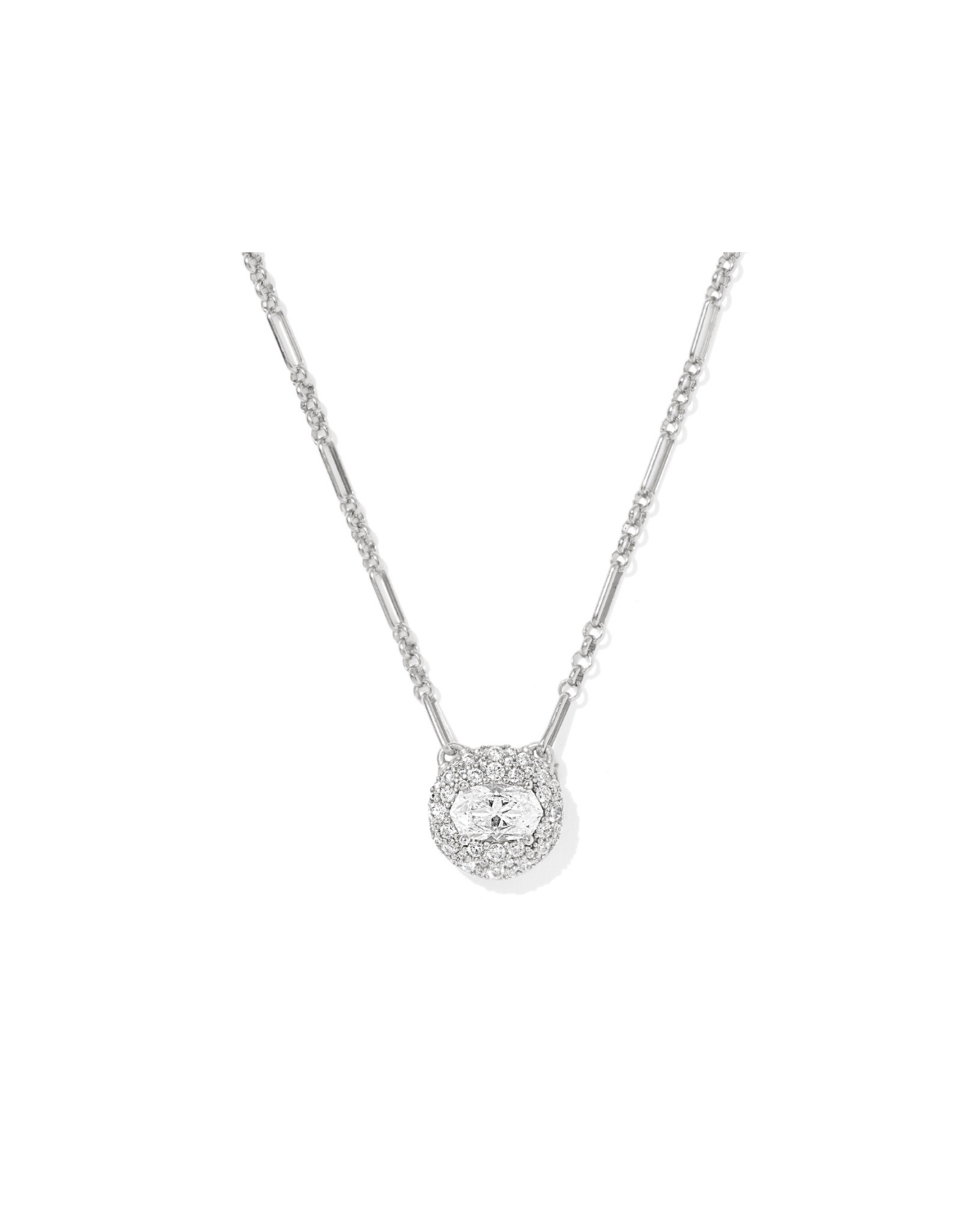 Bella Short Pendant Necklace, White CZ