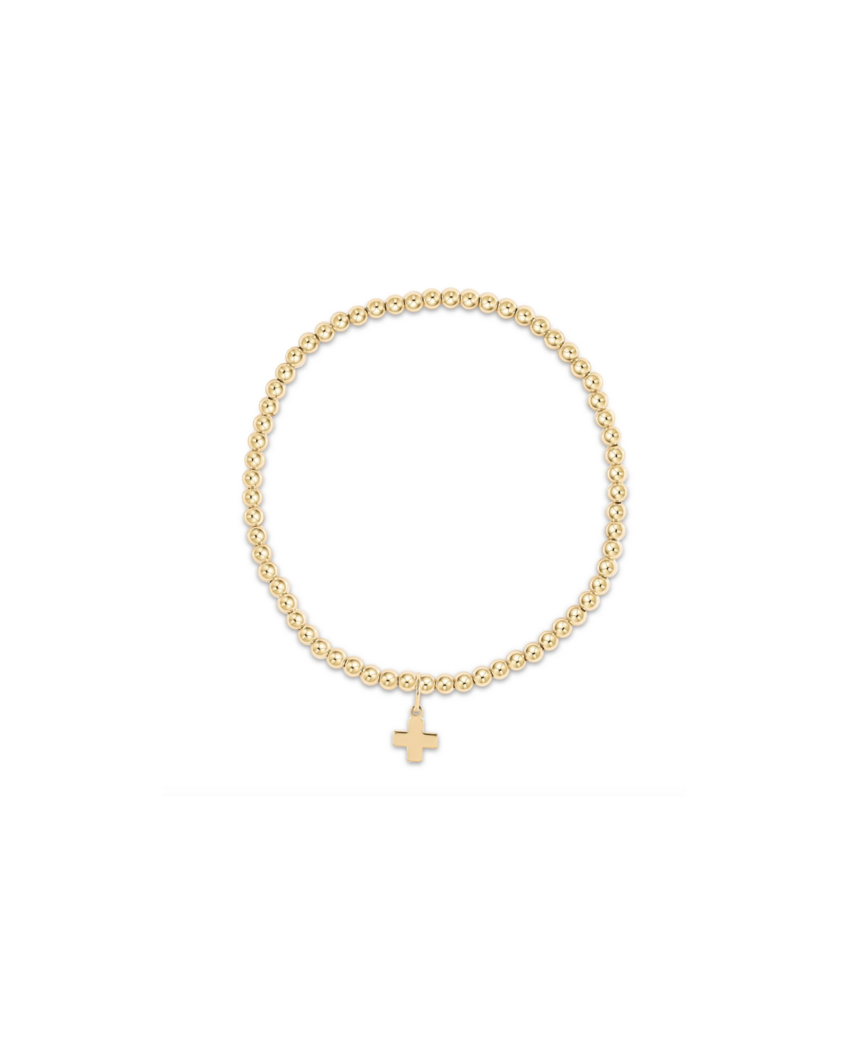 Classic Gold 3mm Bracelet, Signature Cross Gold Charm