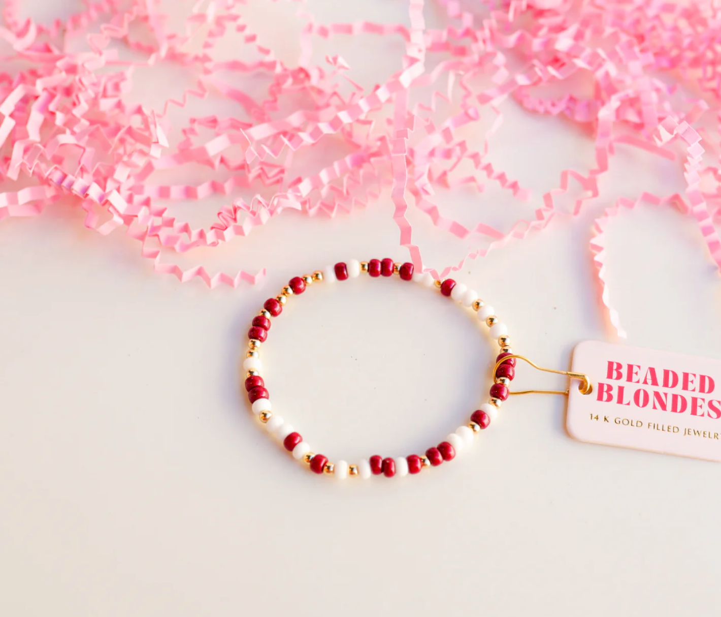 This bracelet is made with a variety of czech glass beads and 14k gold filled beads!