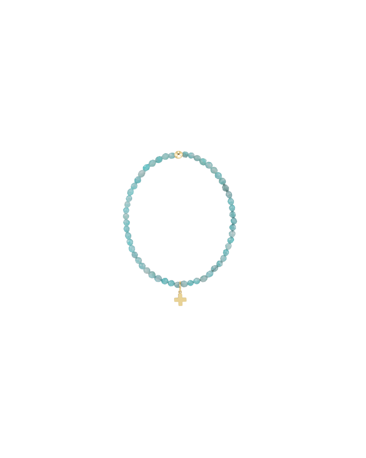 Classic Amazonite 3mm Bracelet - Signature Cross Gold Charm