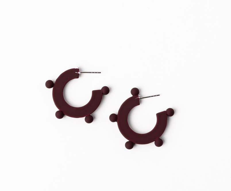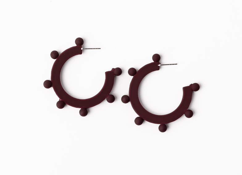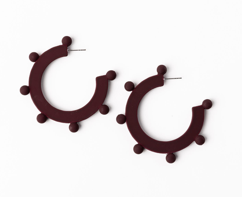 Get in the game with these Astrid Maroon Dotted Hoop Earrings! Their maroon color and playful dotted design makes them perfect for gameday. Plus, they're lightweight for all-day wear. Don't miss out on these quirky and fun statement hoops!
