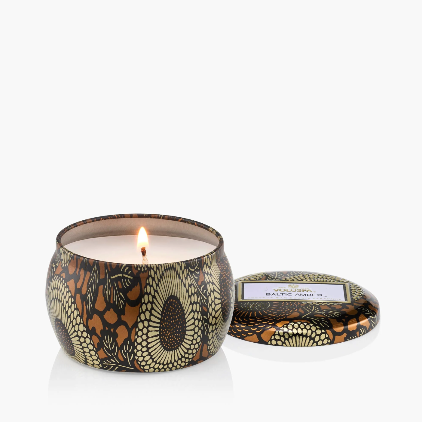 The perfect size to pepper throughout a room! As enchanting as the aroma itself, this tin features bold colors swirling across the Japanese-inspired designs.