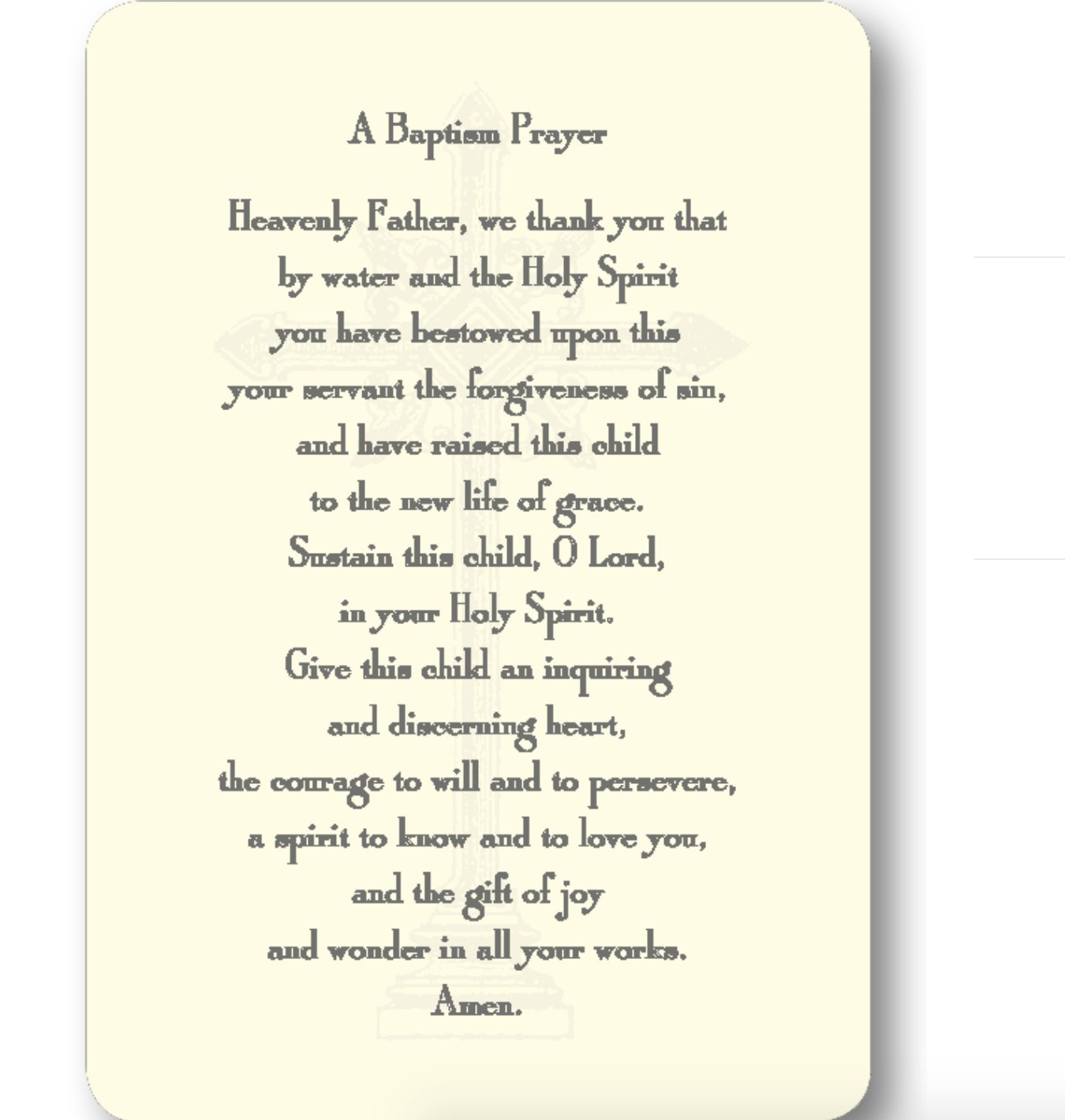 8 printed copies of Baptism Prayer