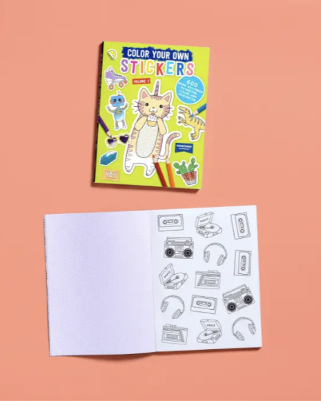 Combine the fun of stickers with the creativity of making them your own. Use markers, pens, colored pencils, or crayons to transform black-and-white designs into one-of-a-kind pieces of shareable (and stickable!) art.