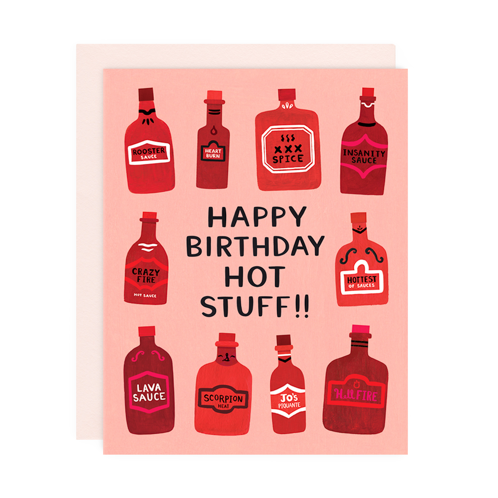 Happy Birthday, Hot Stuff!! greeting card. For all the hotties and hot sauce addicts in your life.