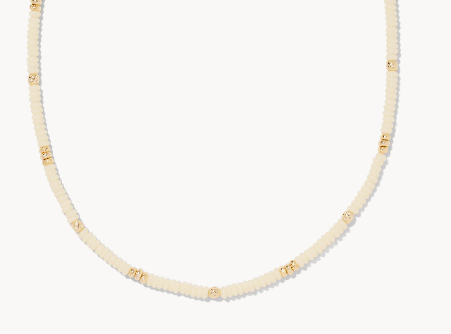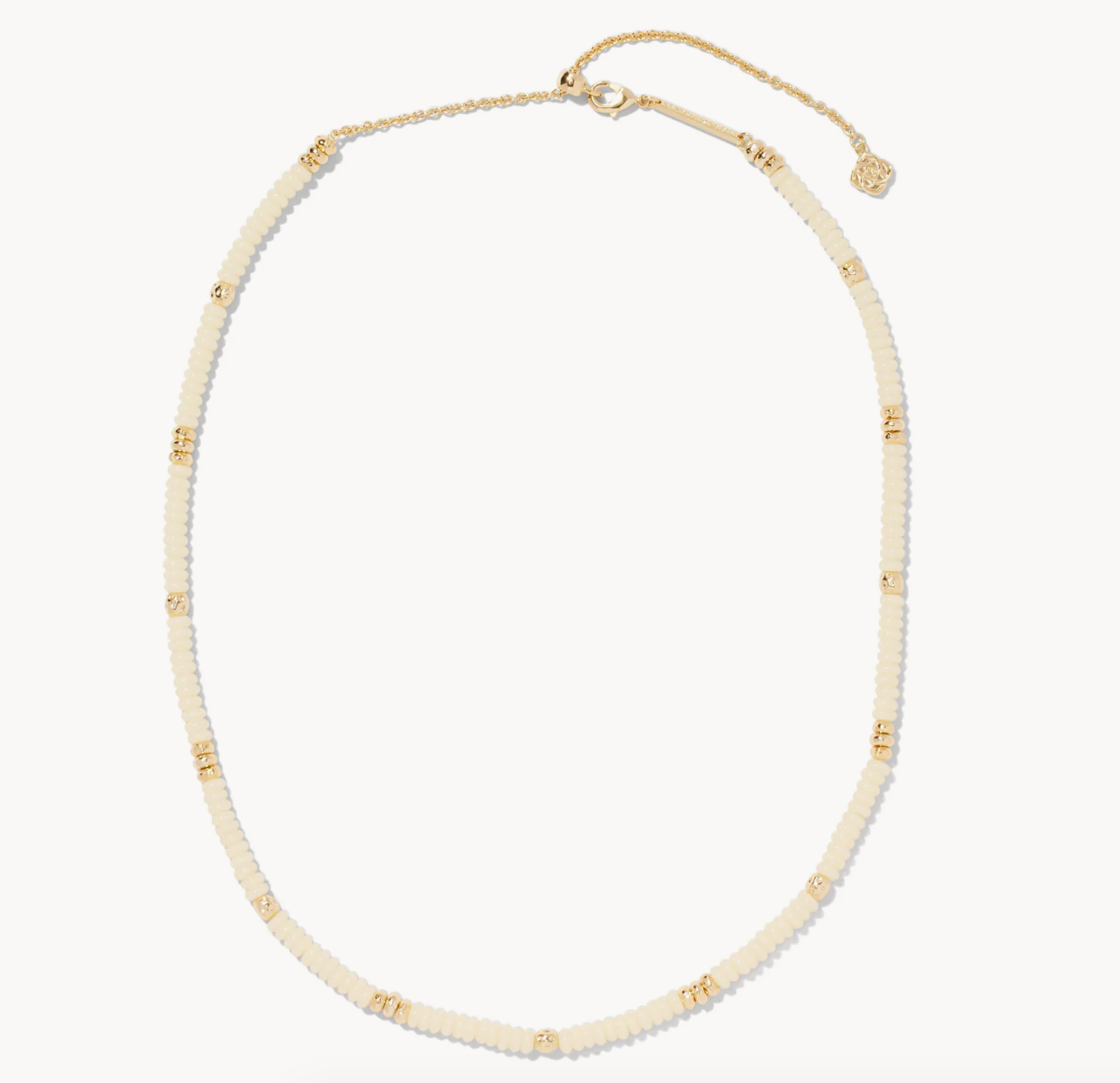 No layered look is complete without a choker—that’s why the Deliah Gold Strand Necklace in Ivory Mother-of-Pearl is the perfect piece to top off your stack. This necklace’s beaded design gives it just the right amount of texture, and its shorter silhouette makes it the ideal layering piece.