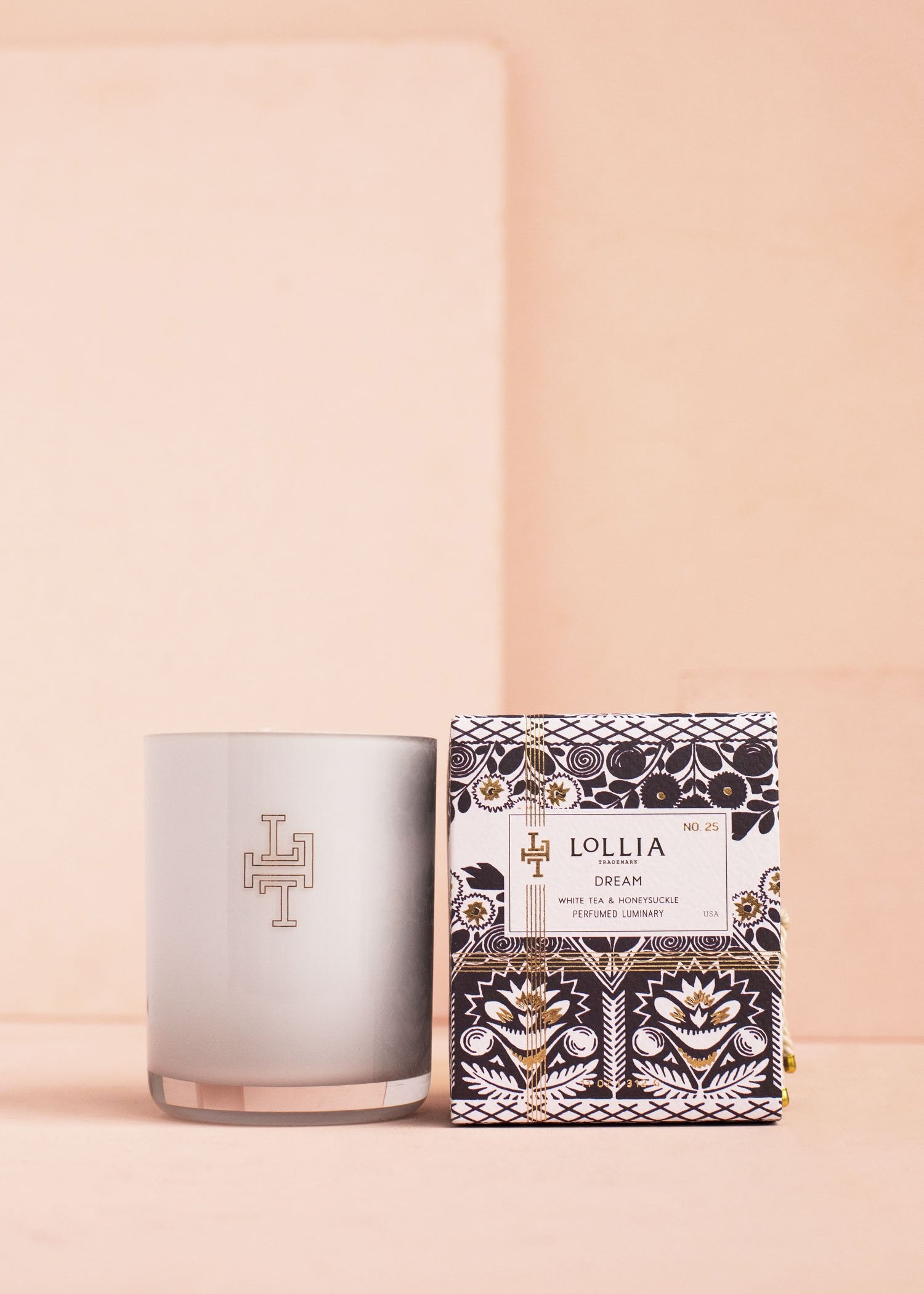The essence of modern romantic luxury, new handblown case glass luminaries envelop your surroundings in effortless radiance. Full of enticing details – from a diecut fragrance preview to chicly knotted ties – each keepsake box sets off the modern monogrammed candle within, washed in gold for a captivating glow.