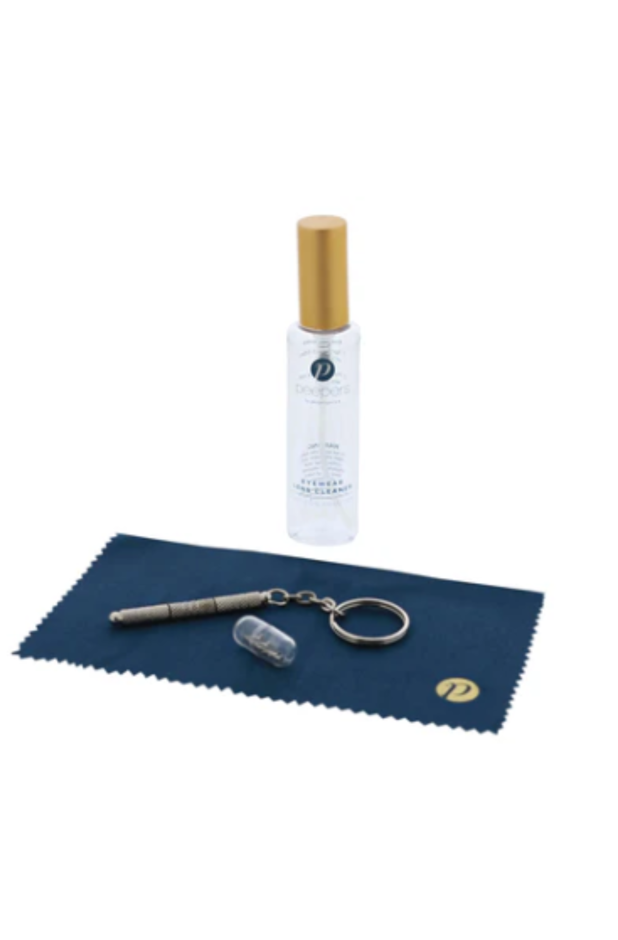 A must-have companion to your new readers, our cleaning kit has everything you need to keep your glasses in tip top shape. Along with a bottle of lens cleaner, we’ve also included a microfiber cleaning cloth featuring Peepers’ latest design and a mini-screwdriver. We even throw in a set of spare screws. Conveniently sized so you can take this kit along with you anywhere.