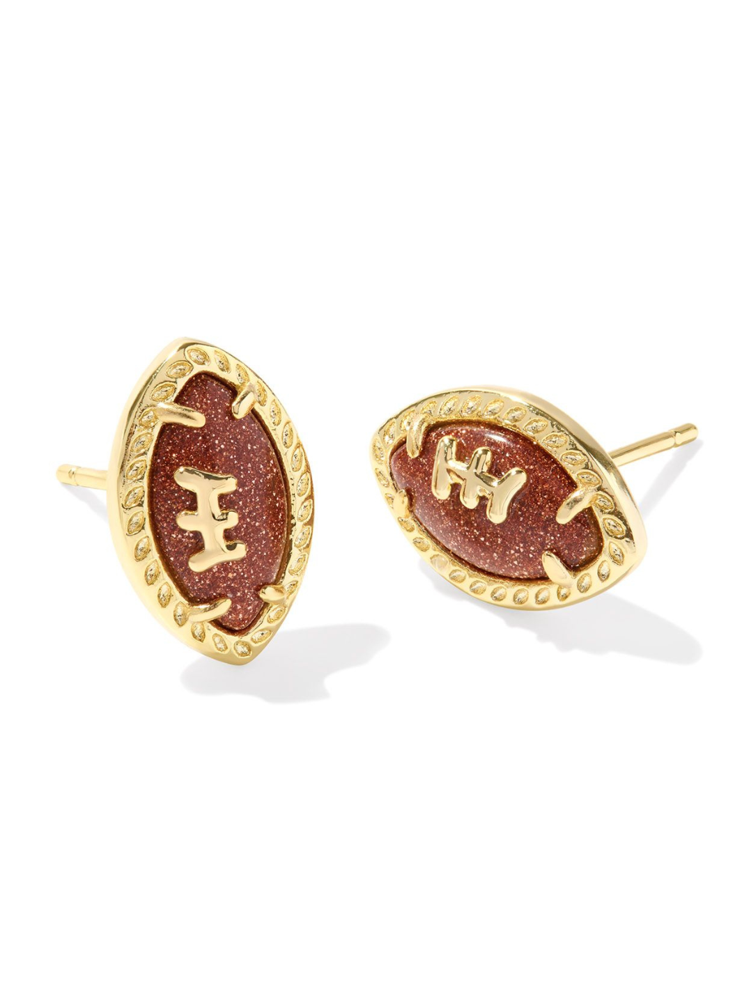 Turn the stands into a runway when you style the Football Gold Stud Earrings in Orange Goldstone. Framed by our signature hoofprint detailing, these sporty studs shimmer with their glimmering orange goldstone.