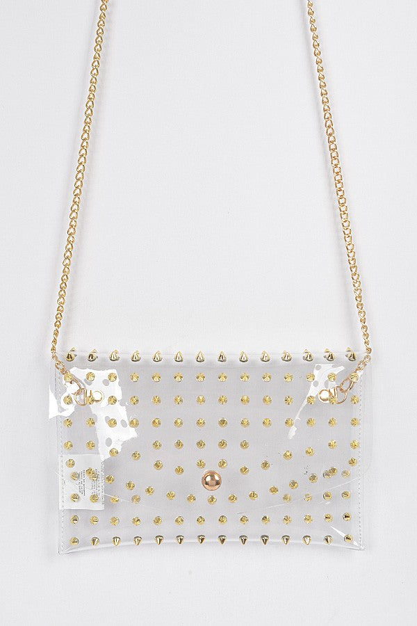 Get ready to cheer in style with the Gameday Ready Crossbody! This playful bag features a sparkling multi-stone envelope closure and a chic gold chain strap, perfect for hands-free fun at football games and concerts. Compact yet eye-catching, it keeps your essentials close while you enjoy every moment of the action.