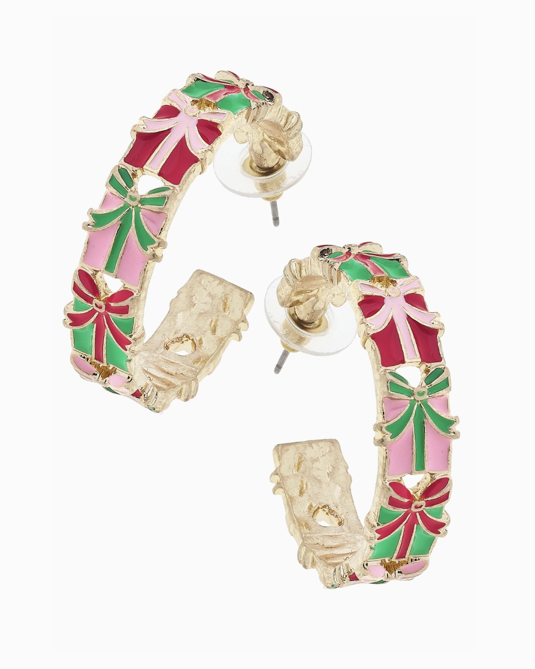 These enamel present hoops are a gift for your wardrobe. Fun, festive, and ready to party. DETAILS: