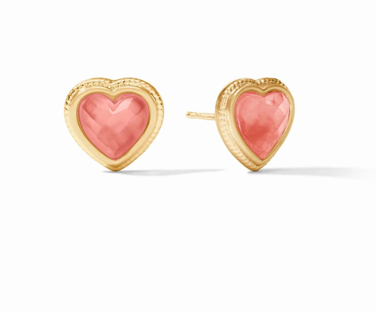 Heart-shaped gemstone studs enhanced with twisted golden wire detail.