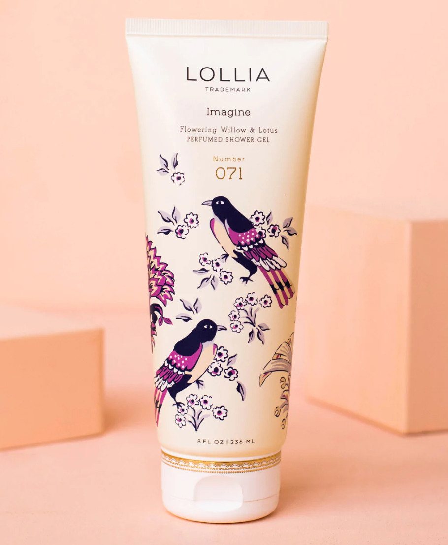 Striking songbirds perch amid a dreamy chinoiserie-inspired garden scape on this satin-touch tube as delicate gold detailing brings a touch of sophistication to any shower.