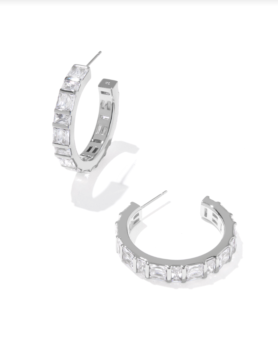 Make an elegant statement with the Jamie Silver Hoop Earrings. Featuring bezel-set baguette crystal detailing and high-shine metal, these earrings are a fabulous (and fun!) addition to any look.