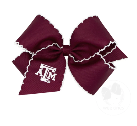King Grosgrain Hair Bow with Moonstitch Edge and Embroidered Collegiate Logo