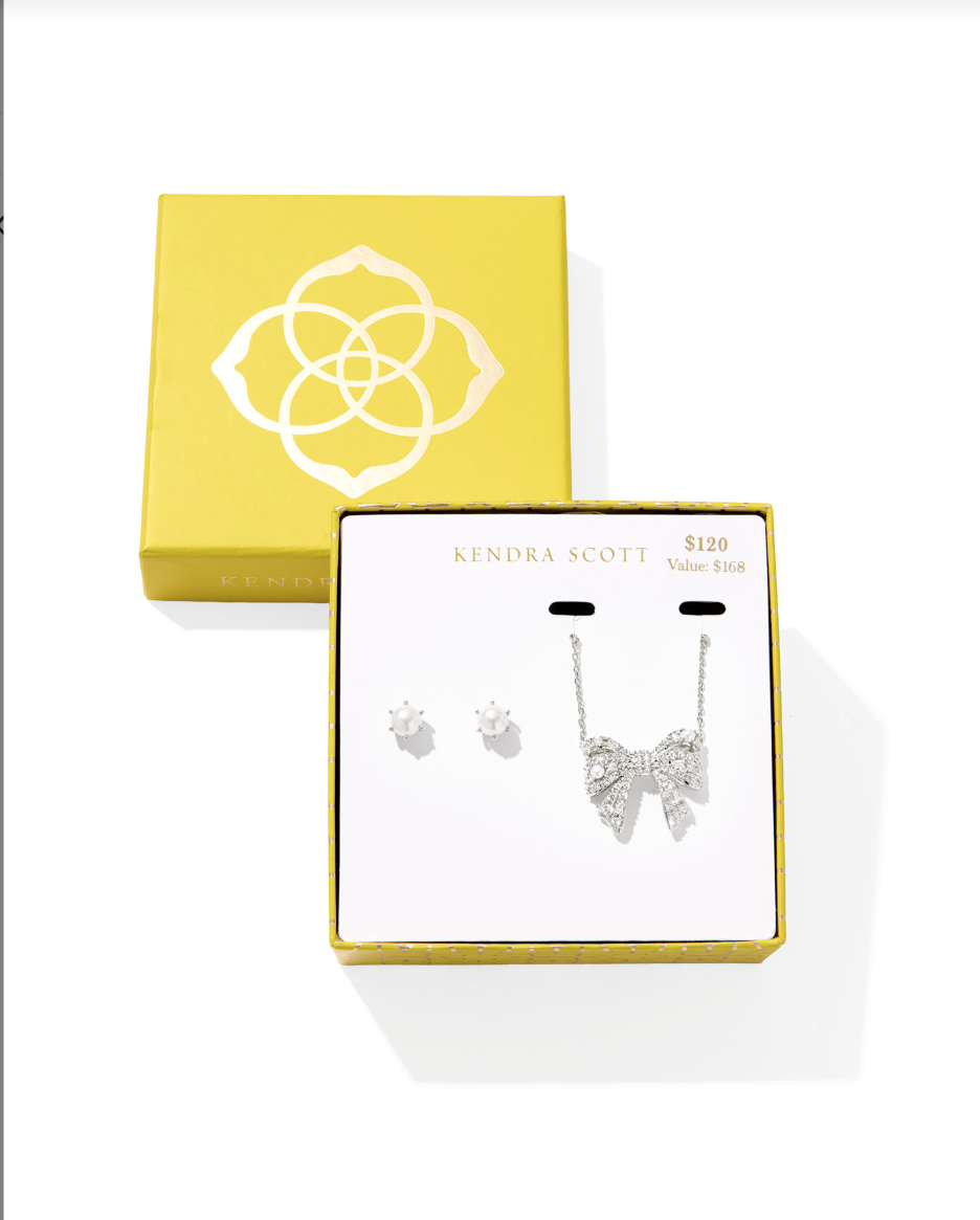 Wrap up your gift giving with the Krista Bow and Ashton Gift Set. Featuring elegant studs with cultured freshwater pearls and a sparkling bow pendant necklace, this duo is the perfect blend of timeless and trendy for anyone on your list. Set includes the Krista Bow Short Pendant Necklace and Ashton Pearl Stud Earrings.