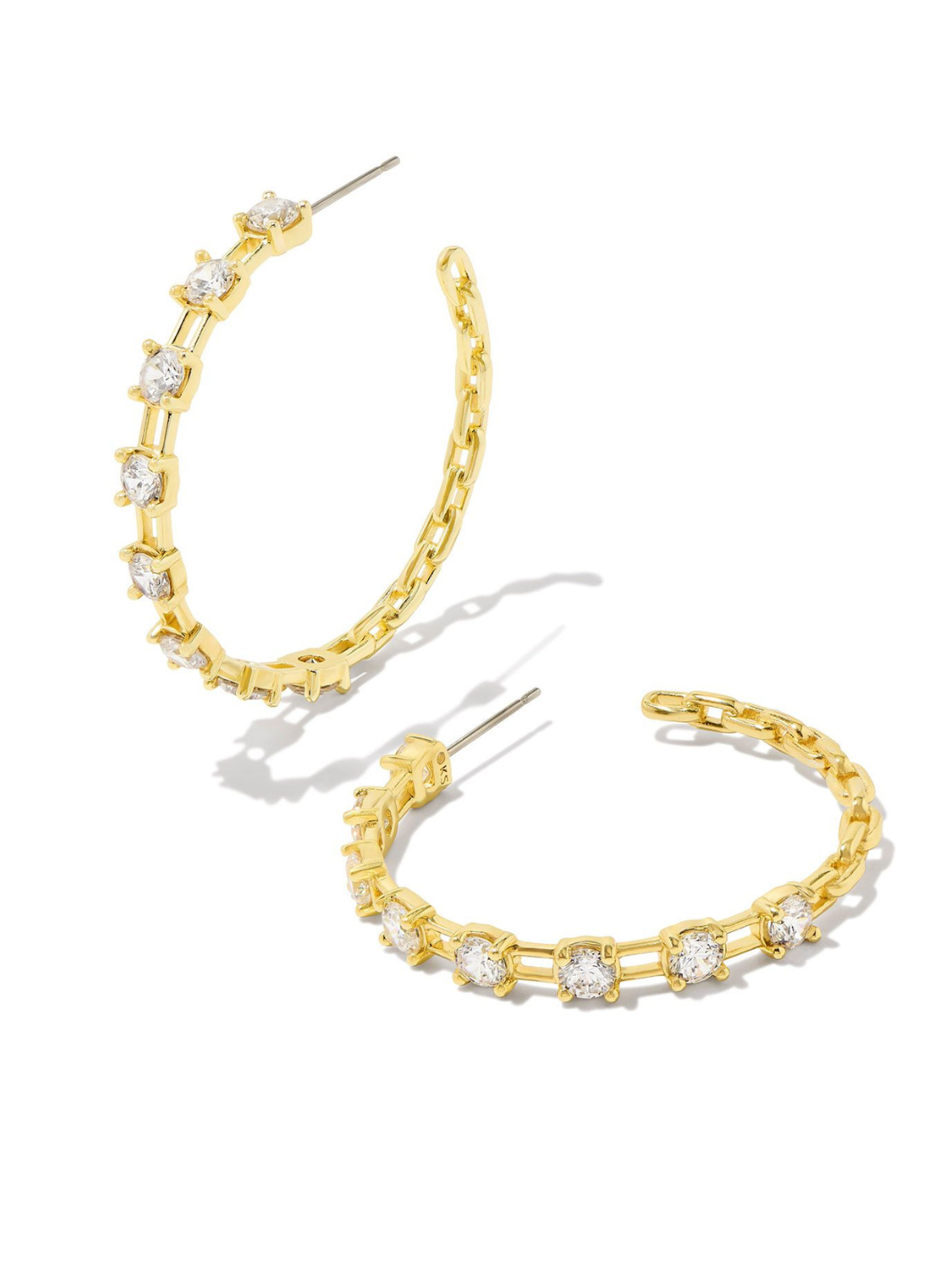 Wanting to turn heads? With the Lexi Gold Hoop Earrings in White Crystal, you’ll be doing that—and then some. Featuring oversized crystal studs and a square link design, these hoops are every statement seeker’s style essential.