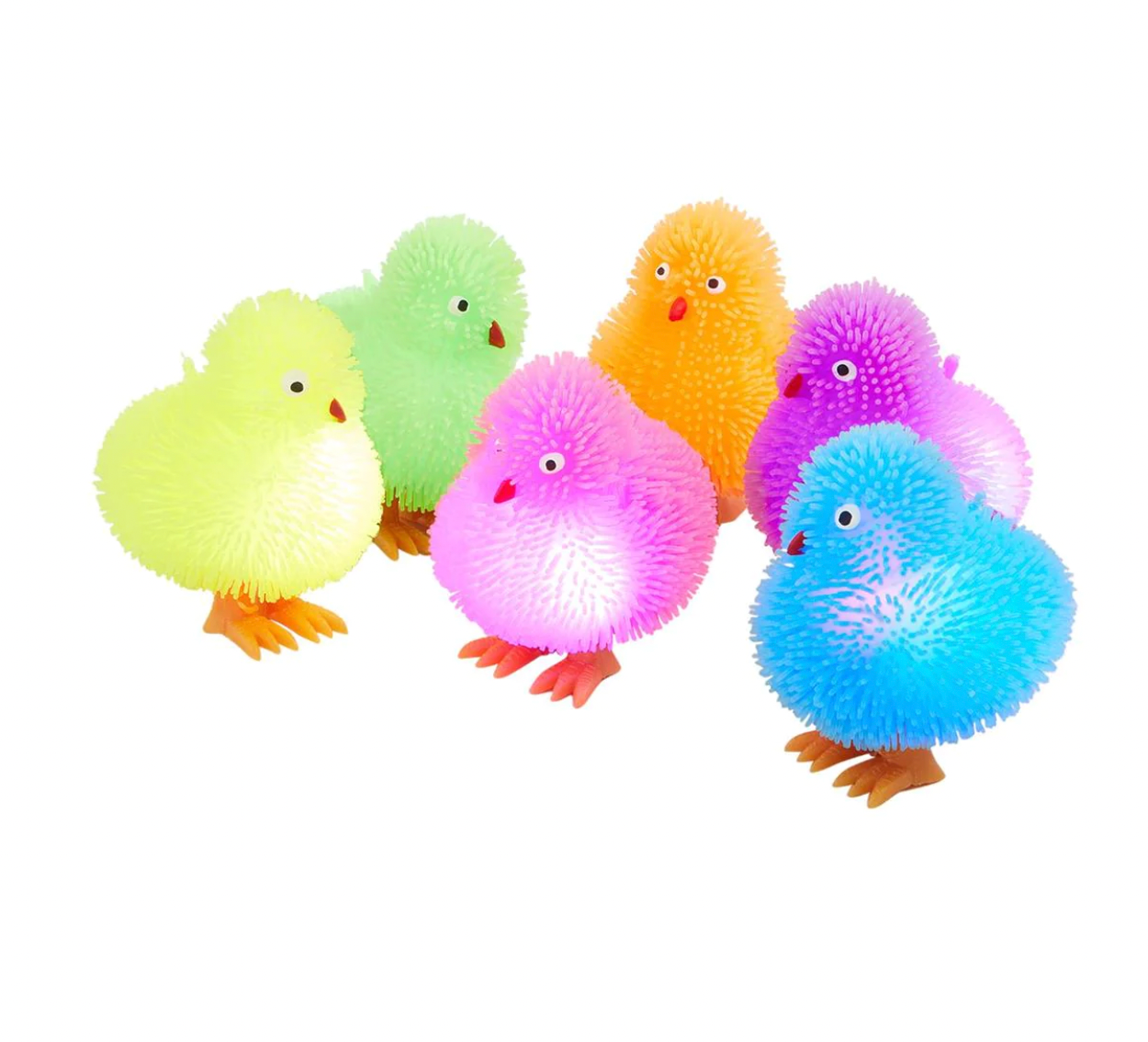 "Bring some light to your life with these quirky and playful Light Up Chicks! Perfect for a pop of light and humor, these chicks are a must-have accessory."