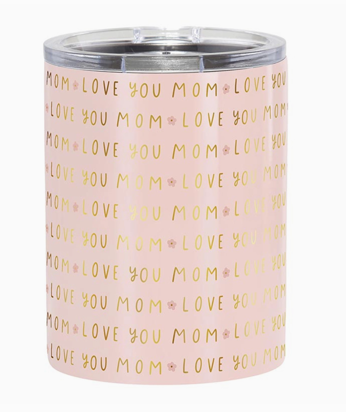 Show your appreciation with our Stainless Steel Tumbler featuring the heartfelt phrase "Love You Mom" wrapped in gold foil print, making it a perfect gift for your mom.