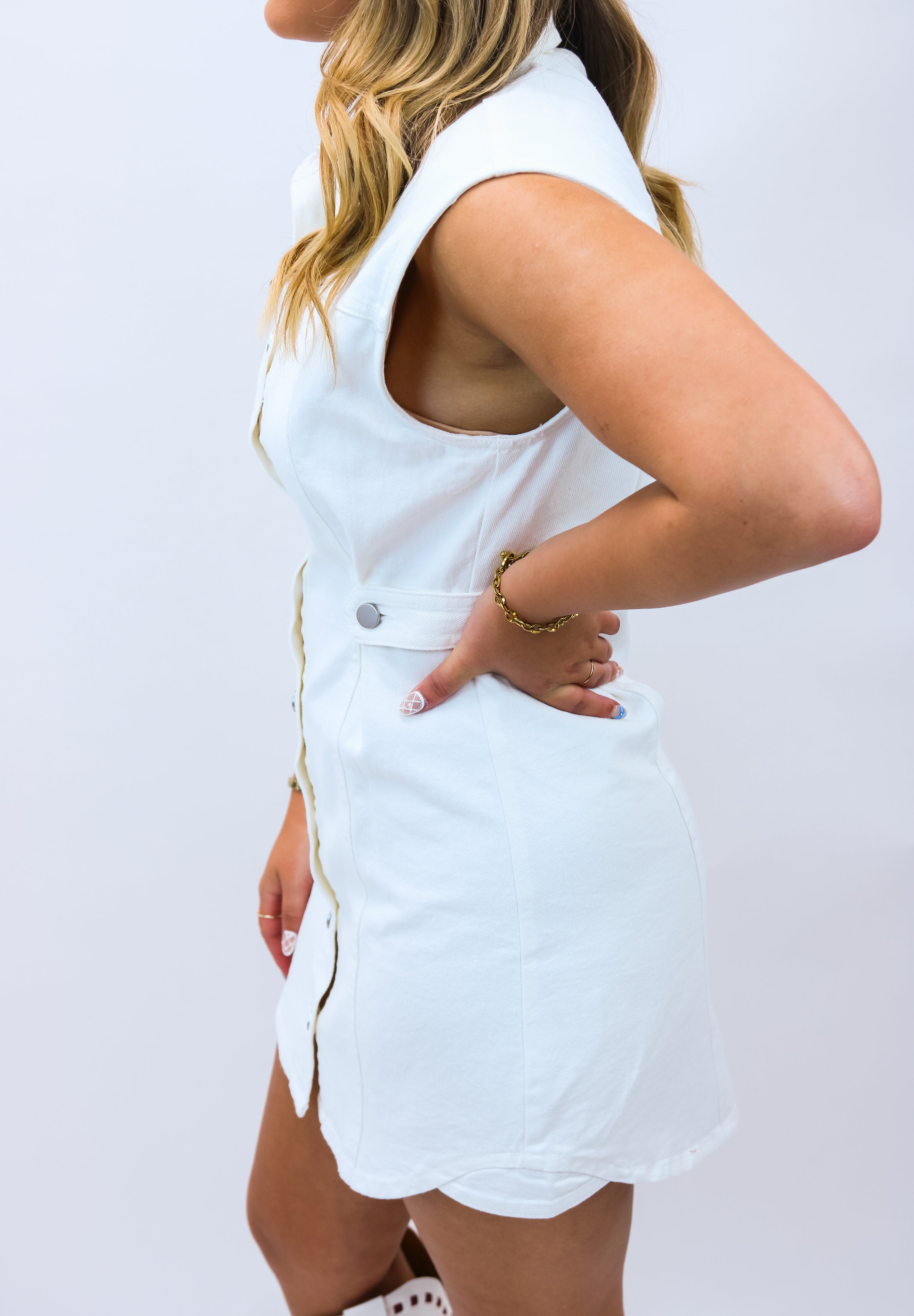 Join me at the field in this denim dress, perfect for gameday antics. The Meet Me at the Field Dress is a playful addition to your wardrobe with a touch of quirkiness. Cheers to fun times and a winning look!