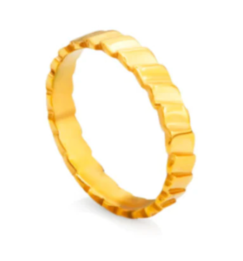 Delicate ring with a modern twist. Made with PVD and stainless steel, you can wear this waterproof ring anywhere.