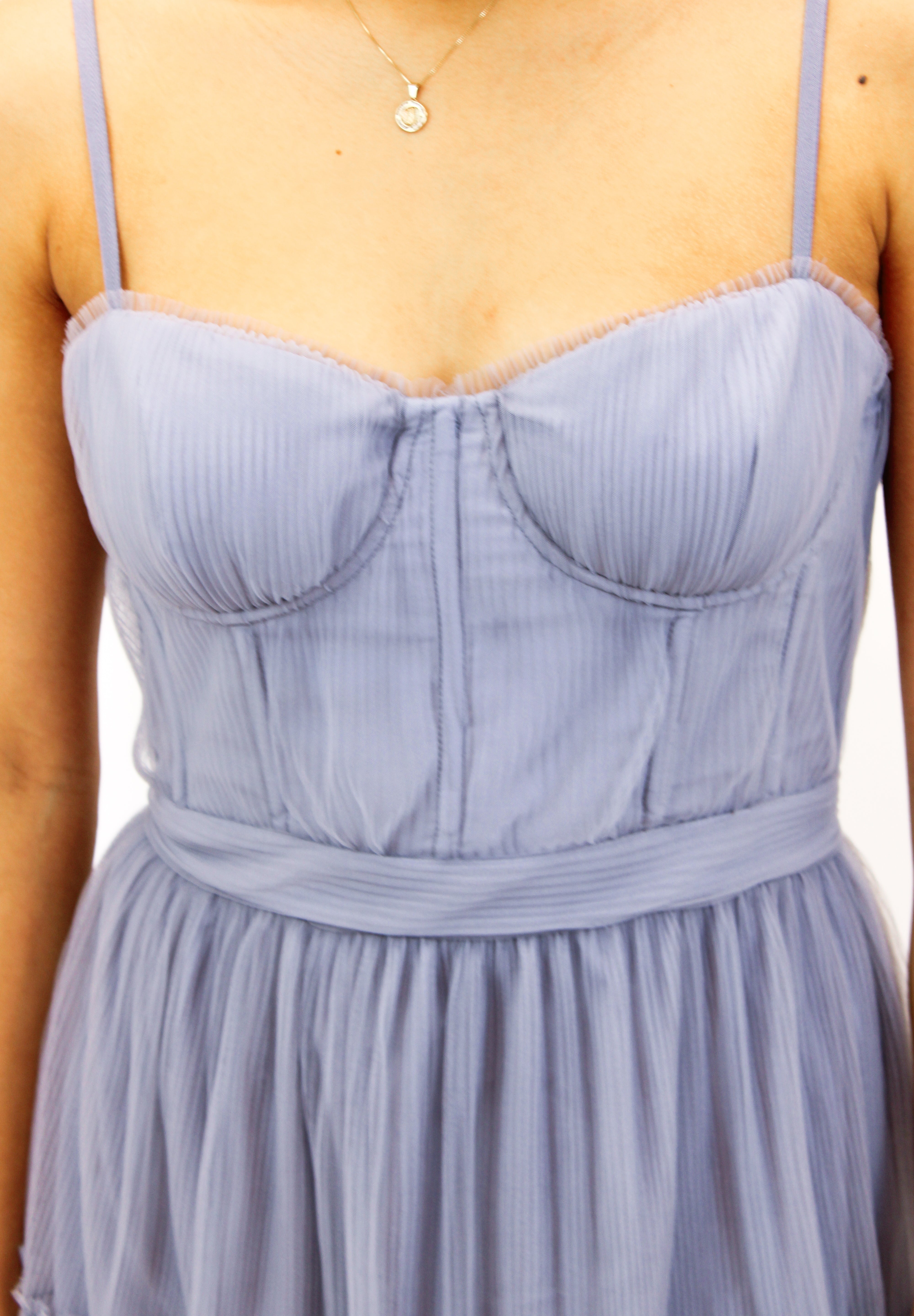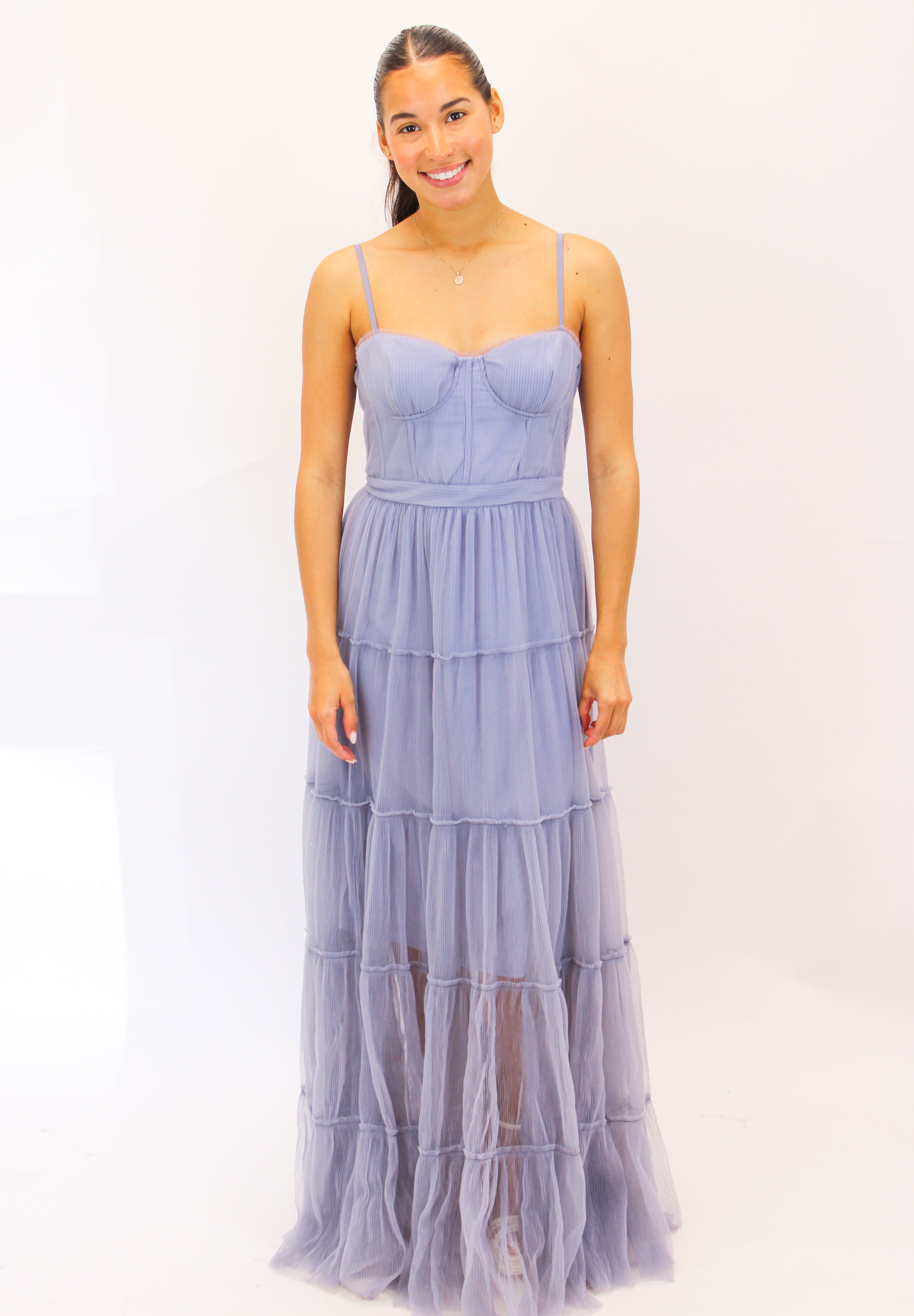 Mireya Bustier Tulle Maxi Dress, Dusty Blue