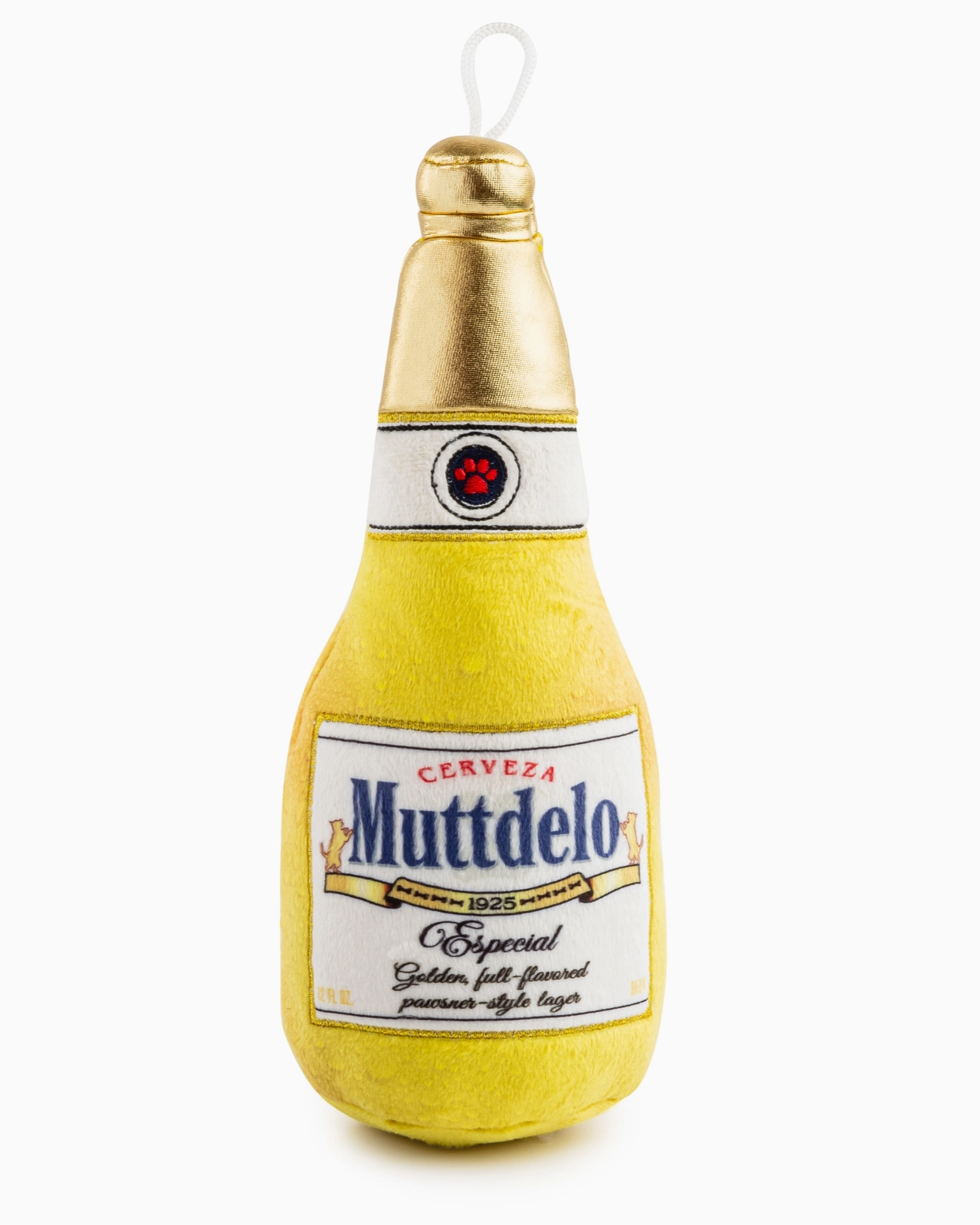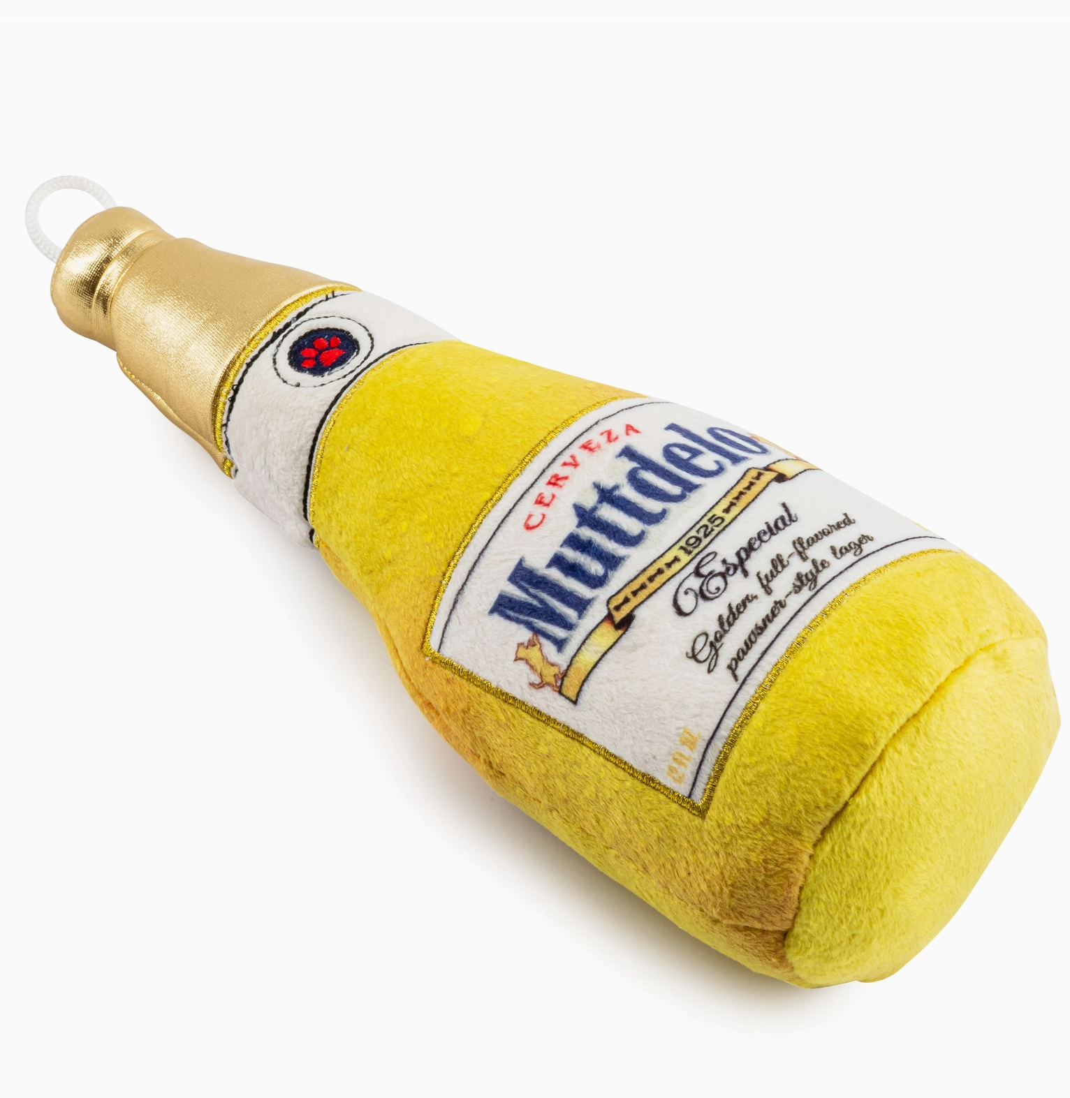 Cheers to playtime! The Muttdelo Beer Bottle plush toy is perfect for pups who love to sip on fun. Made from 100% soft plush polyester, it features a built-in squeaker and crackle material for an irresistible play experience. All Haute Diggity Dog toys now feature a durable mesh lining for extra durability! Whether it’s happy hour or fetch time, this parody brew plush dog toy is sure to be a hit!