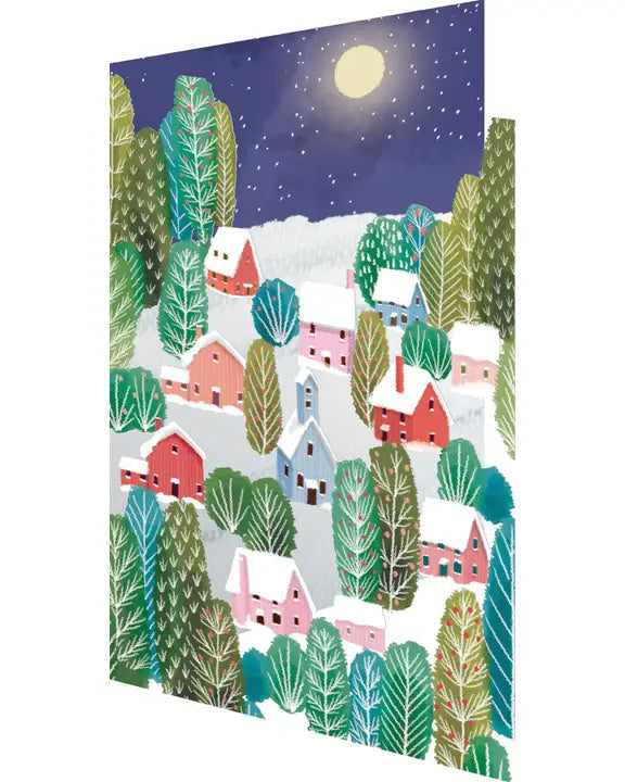 Painted Snowy Village Lasercut Christmas Card