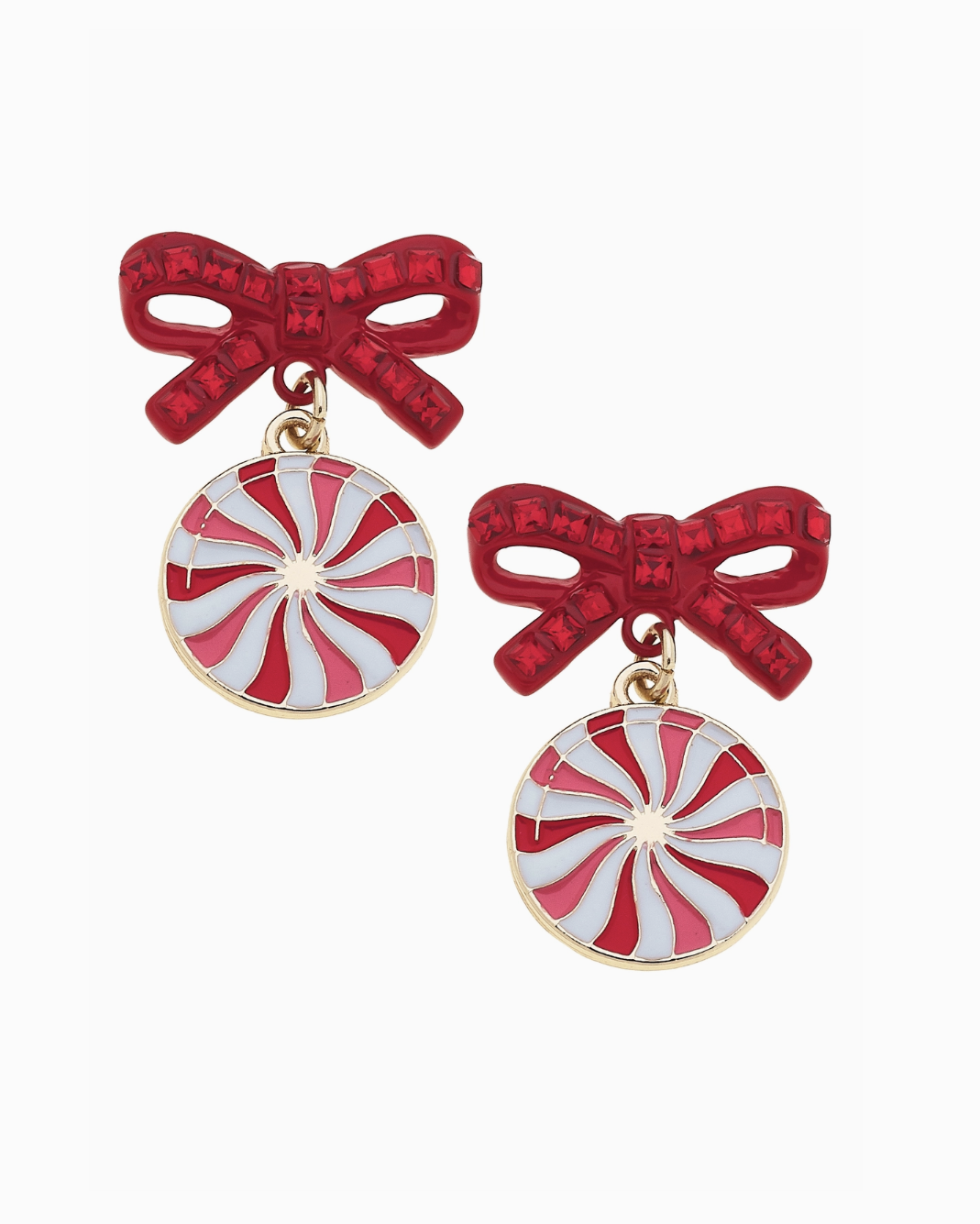 These sparkling pave bows look good enough to eat. A peppermint-inspired accessory for your party look.