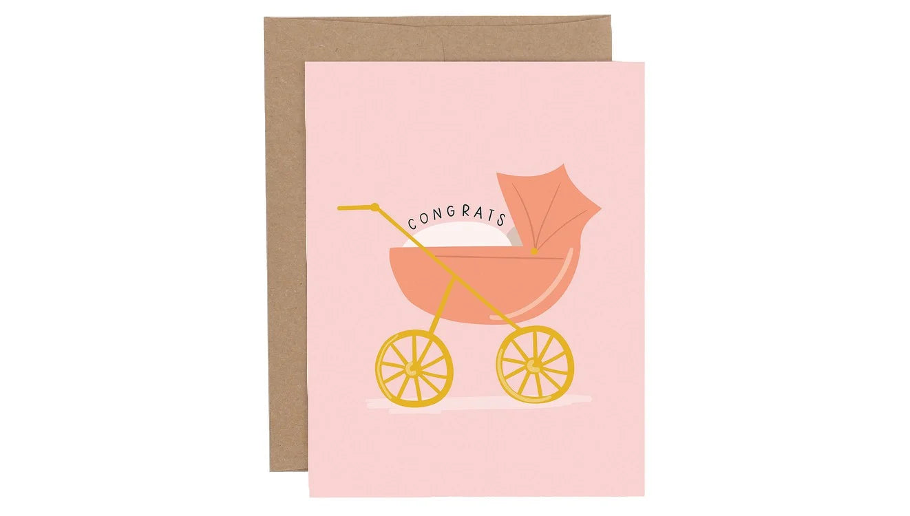 Celebrate the newest arrival with our adorable Baby Carriage Greeting Card. Perfect for baby showers or welcoming the little one, this hand-drawn card is as sweet as can be, making it the ideal way to send your best wishes to the growing family.