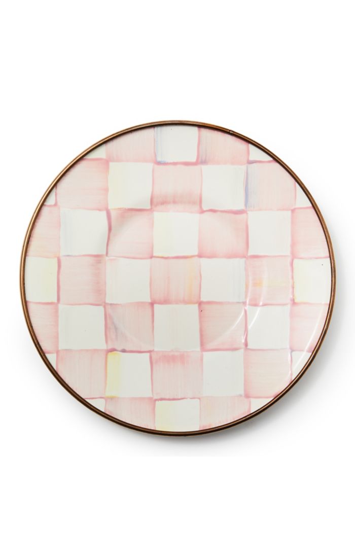 Heavy-gauge, hand-glazed steel underbody with hand-painted Rosy Checks, rimmed in bronzed stainless steel. Pieces may vary due to the handmade nature of each product. Imported.