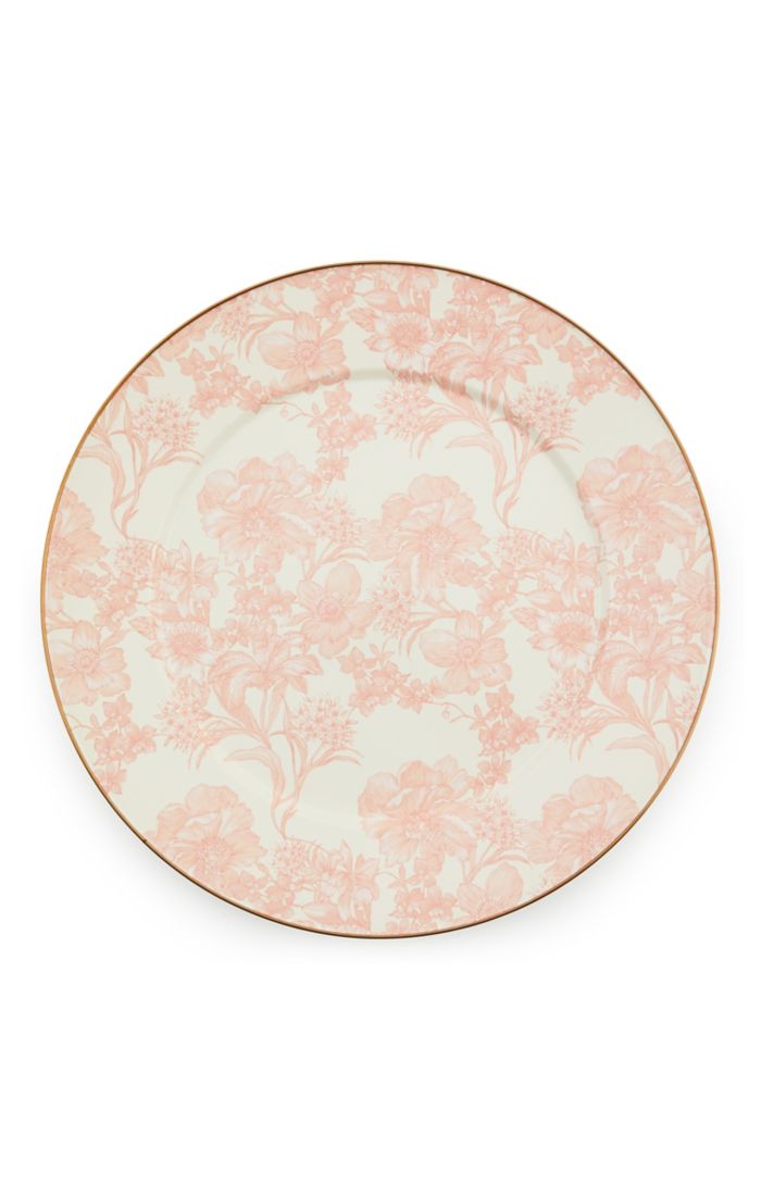 Heavy-gauge, hand-glazed steel underbody with hand-painted Rosy Checks, rimmed in bronzed stainless steel. Brass and glass accents. Pieces may vary due to the handmade nature of each product. Imported.