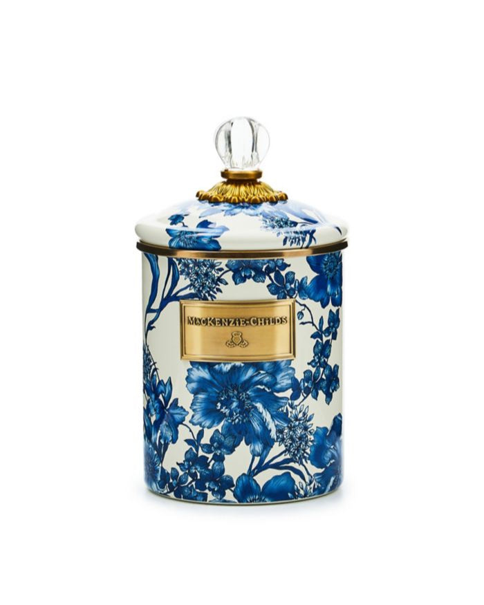 Heavy-gauge, hand-glazed steel underbody embellished with hand-applied transfers, rimmed in bronzed stainless steel. Lid is topped with a glass finial. Silicone seal inside lid. Pieces may vary due to the handmade nature of each product. Imported.-
