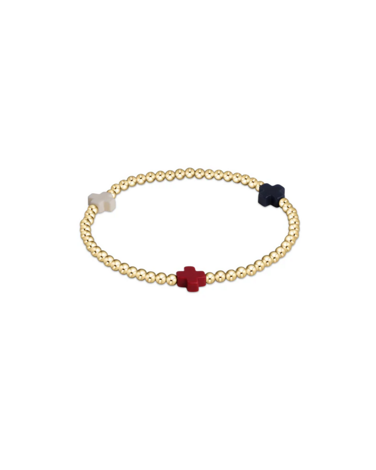 Signature Cross Gold Pattern 3mm Bead Bracelet Firecracker