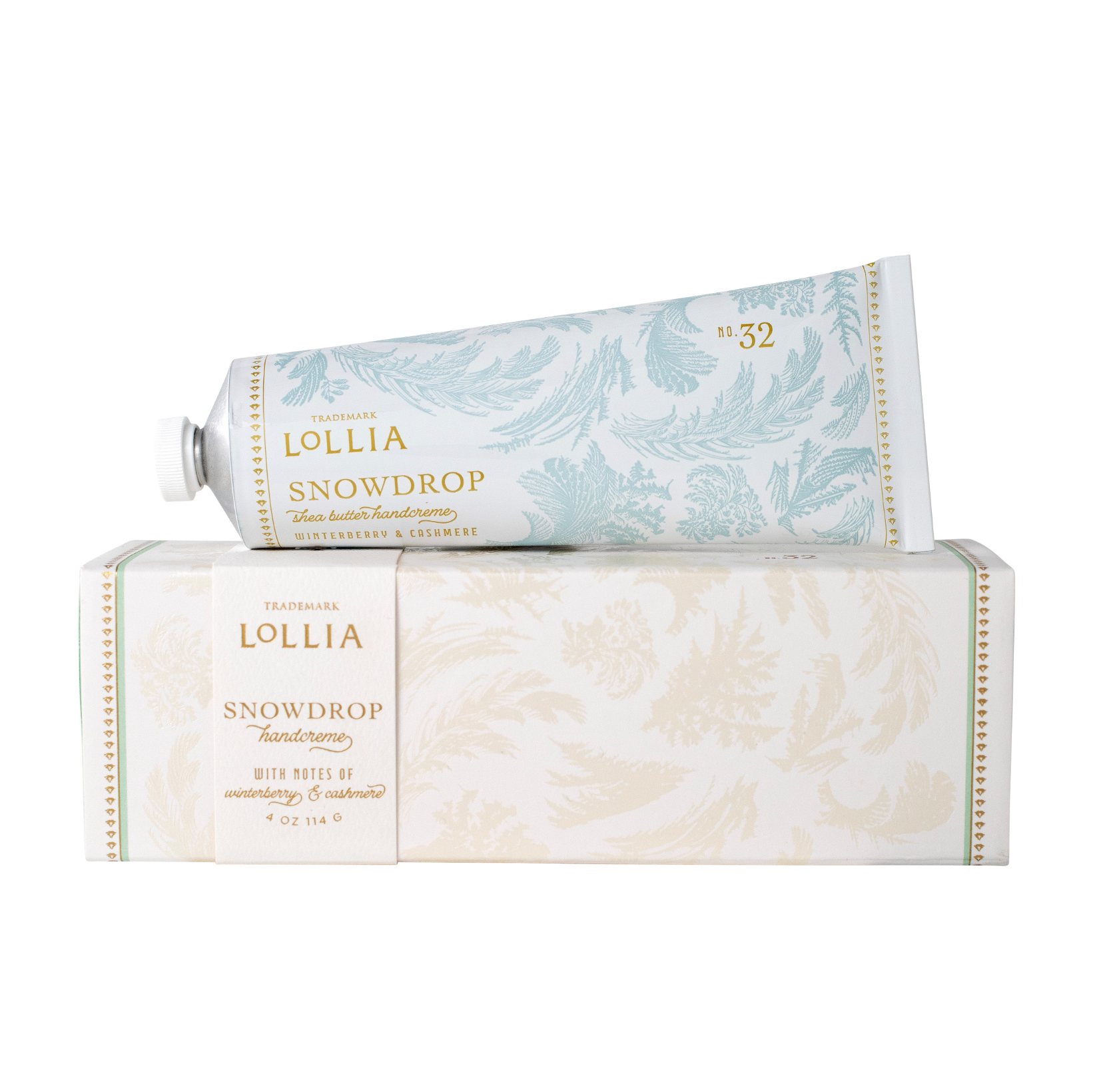 Lollia Snowdrop captures the serene beauty of a delicate frost at dawn with a refined blend of Winterberry, White Woods, Bergamot, Camellia, and soft Cashmere.