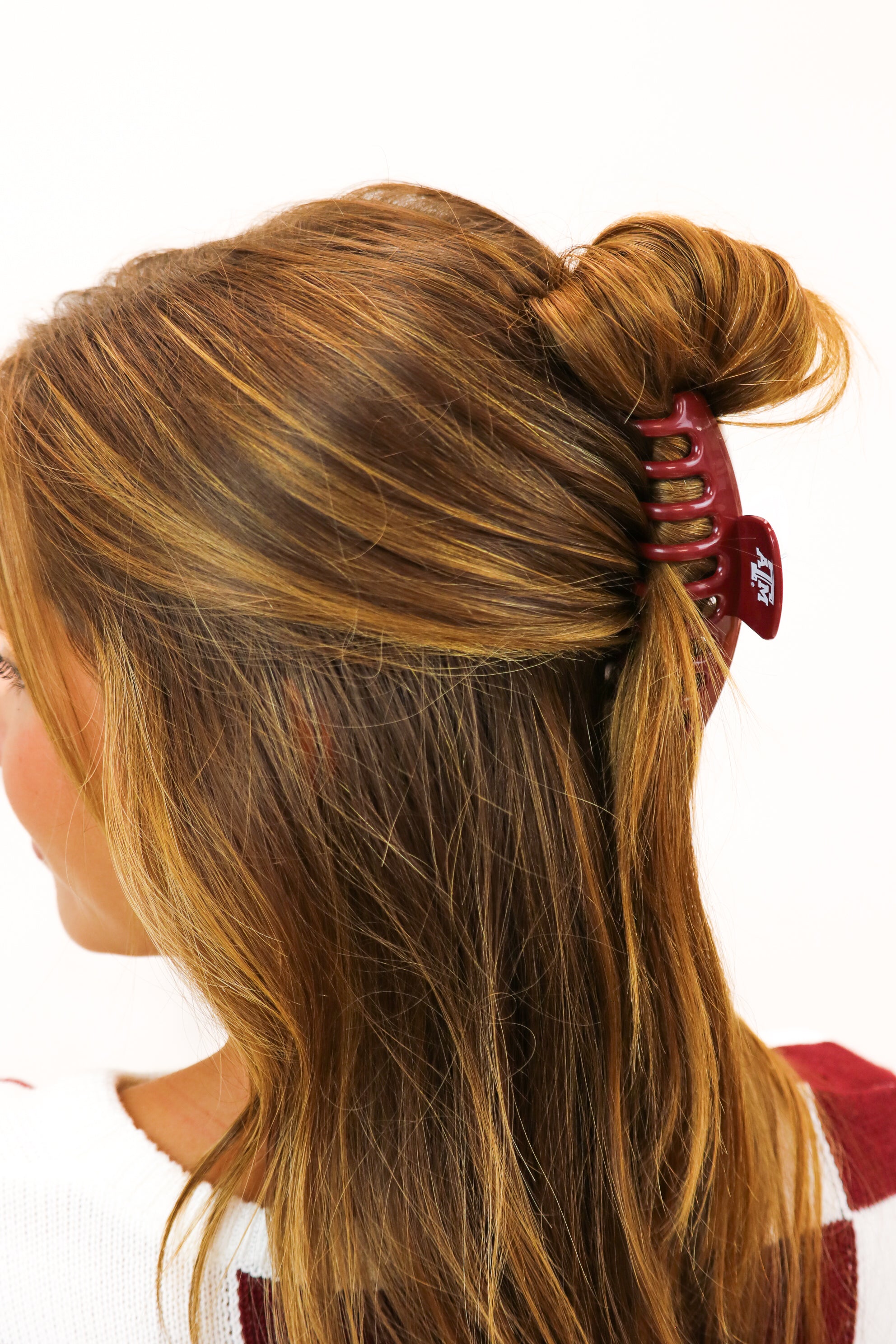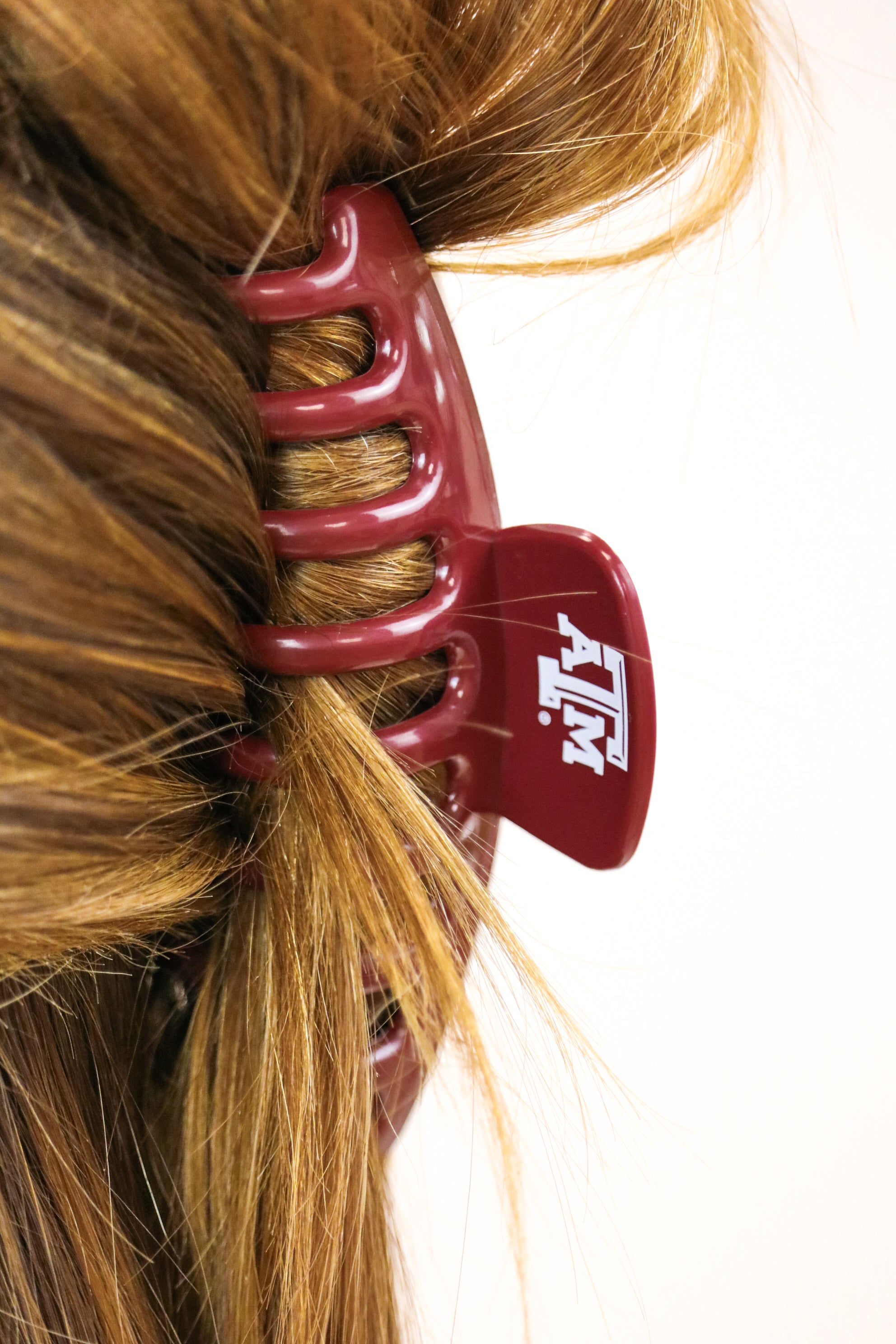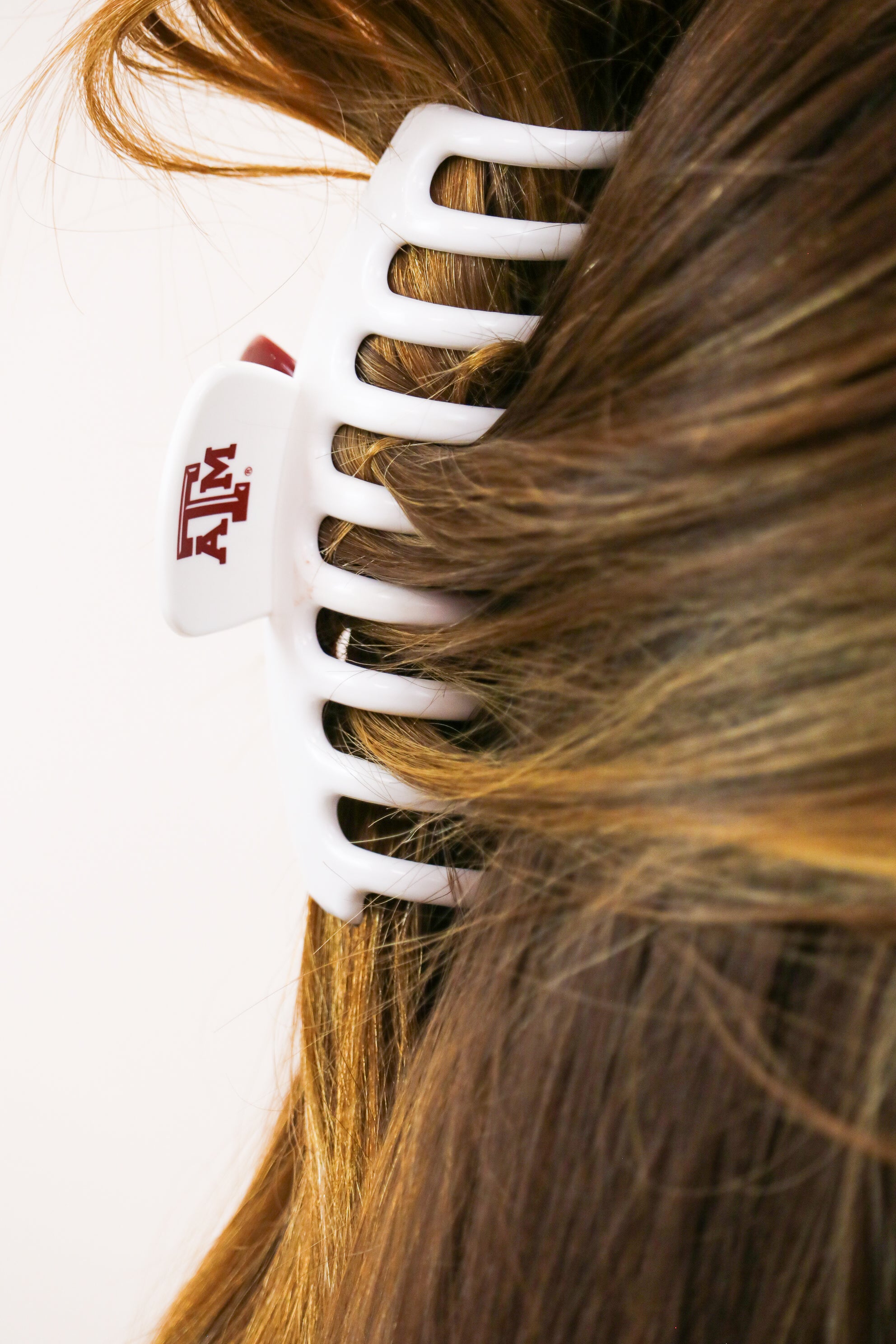 Get game-ready with this Texas A&M hair clip! Perfect for gameday (or anyday), show off your Aggie pride with this fun accessory. Keep your hair in place and make a statement, all while supporting your favorite team. Whoop!