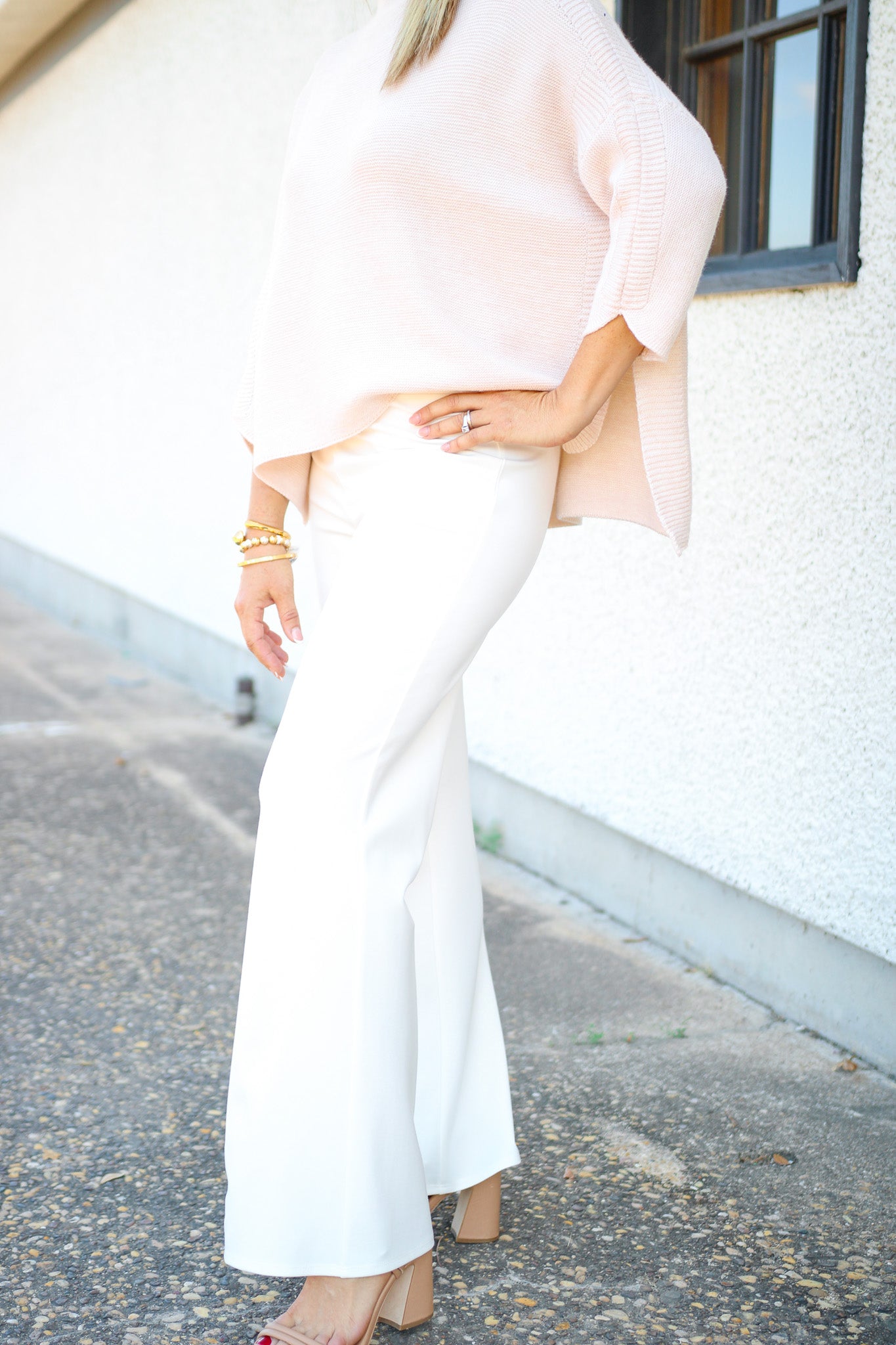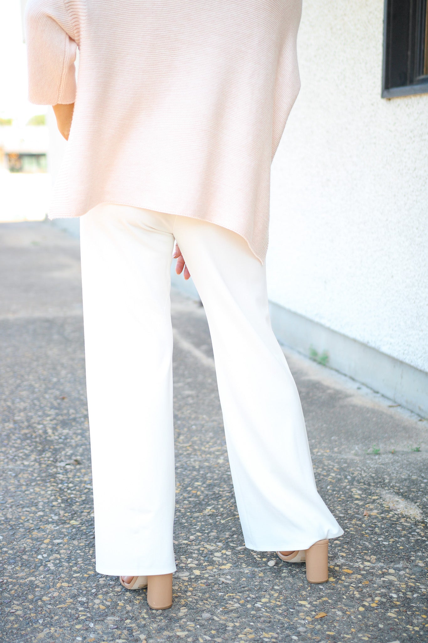 Our Trixie pant is a fan favorite! Featured in our solid stretch knit Jude Ponte, it's a pull-on wide-leg pant with an elastic waistband that sits on the hip. The width of the legs provides a loose and flowing silhouette, creating a more relaxed and comfortable fit while still looking stylish and polished.