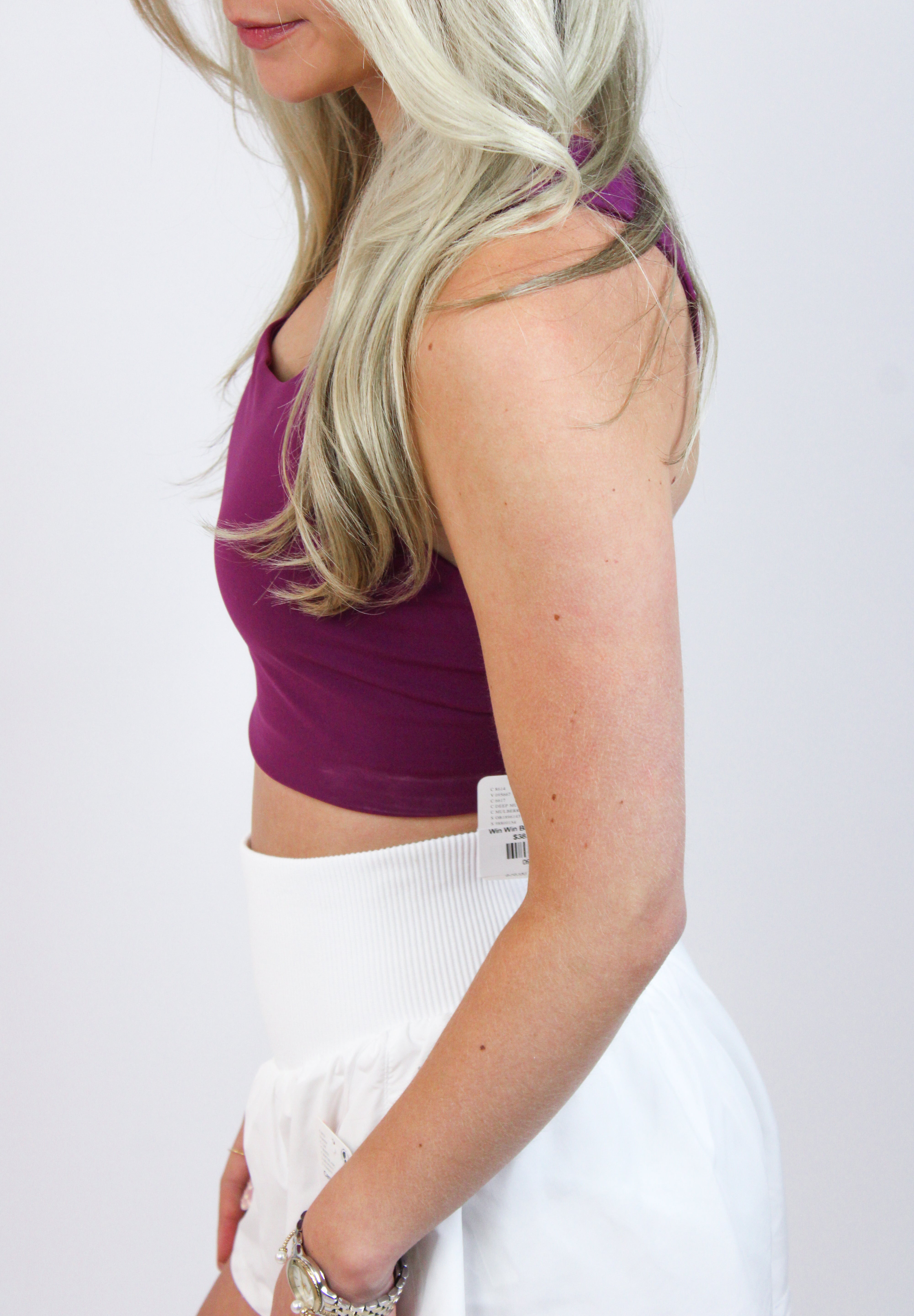 Bring the intensity in this high-impact sports bra, featuring a soft, compressive fabrication with a flattering square neck and wide, v-back straps on a long-line silhouette for all-around support.