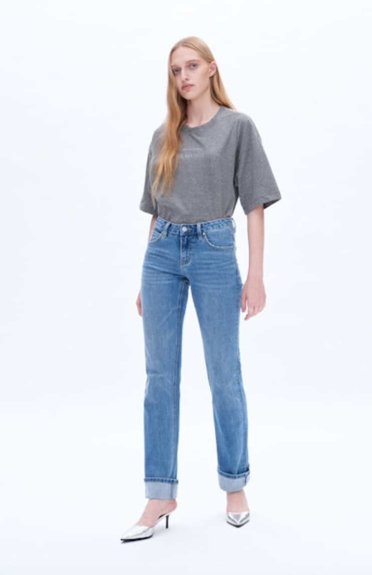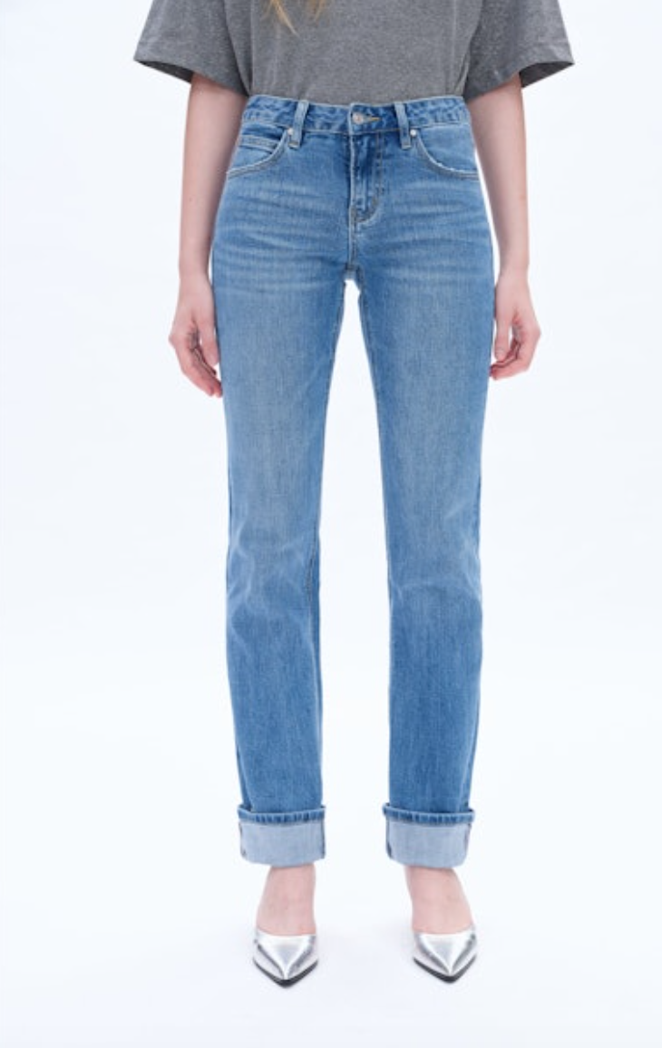 Yoyo Mid Rise Cuffed Straight Jean, Island