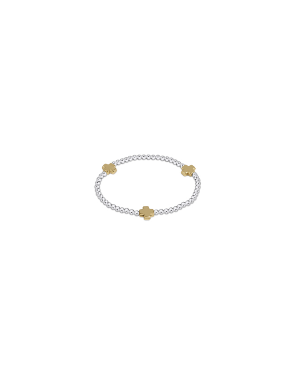 Signature Cross Sterling Mixed Metal Pattern 3mm Bead Bracelet, Gold