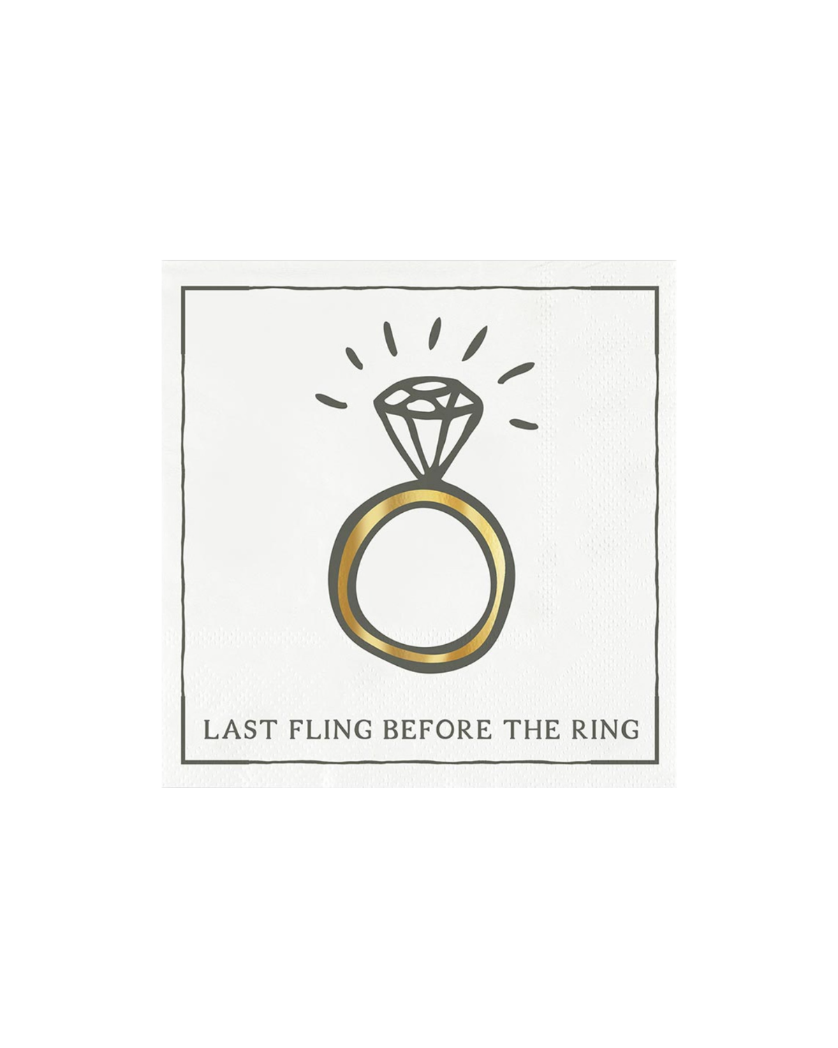 Add a playful touch to your celebration with our stylish napkin set, featuring a gold foil ring design and the fun phrase "Last Fling Before the Ring".