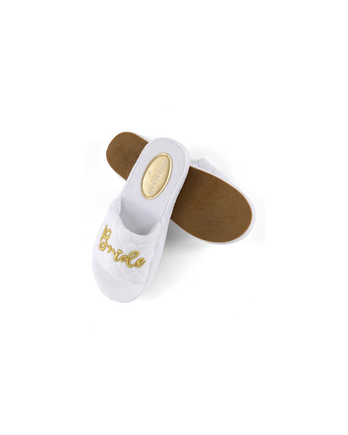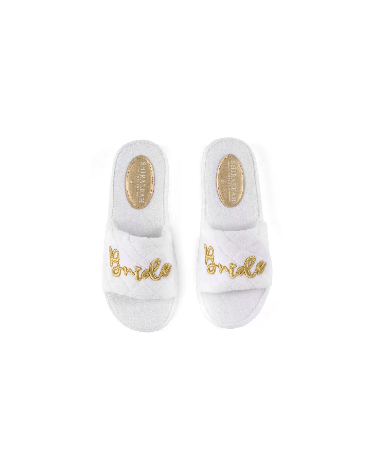 Have some extra fun in the sun for your wedding with Shiraleah's "Bride" Sol Pool Slides. Made from soft and absorbent terrycloth material with a durable EVA sole, these chic white sandals are the perfect bachelorette or honeymoon accessory with their simple, golden "Bride" embroidery.