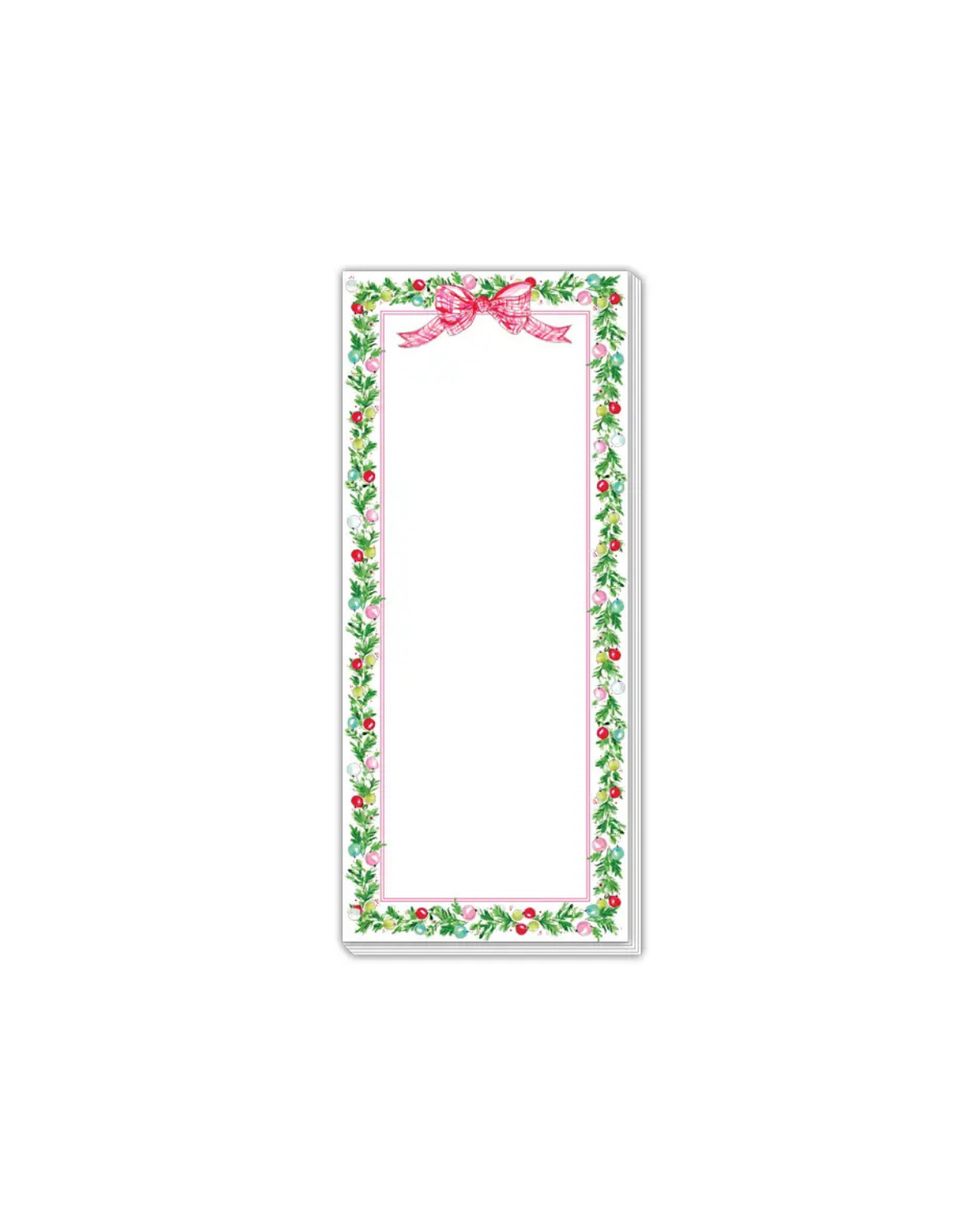 Holly Colorful Ornaments Border Pink Plaid Skinny Notepad