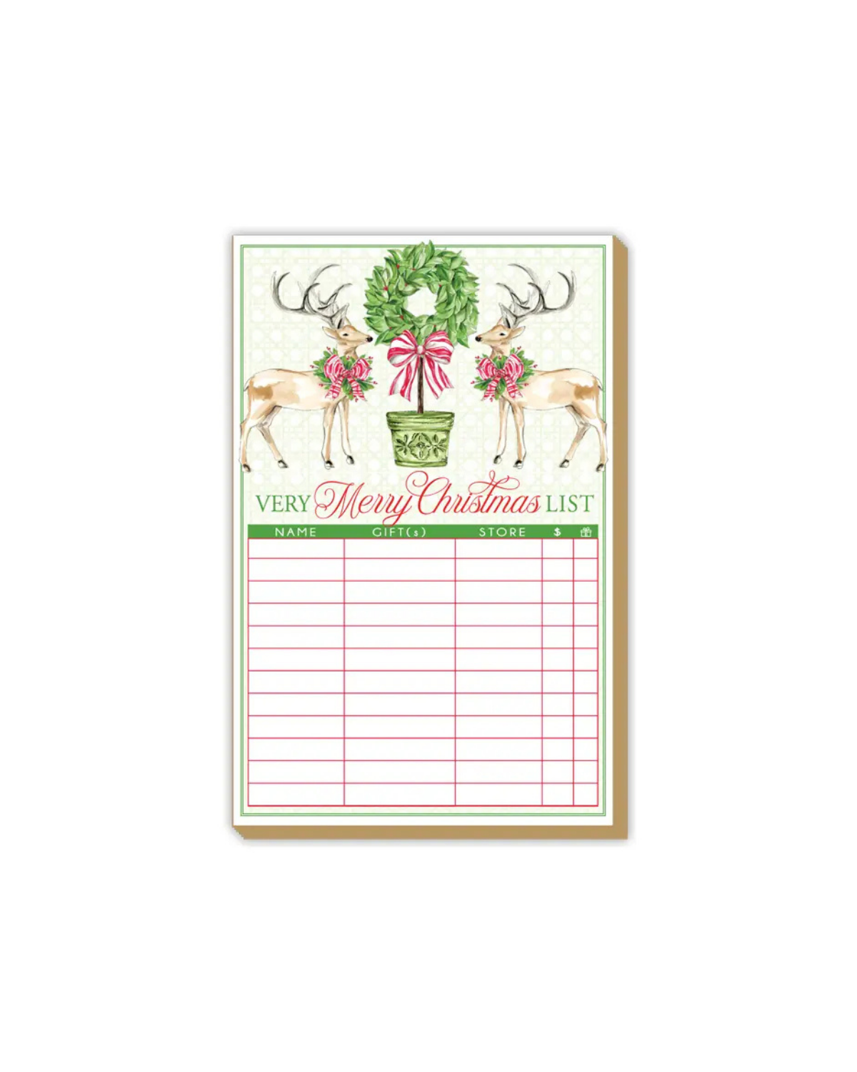 Very Merry Christmas List Deer with Holly Luxe Large Notepad