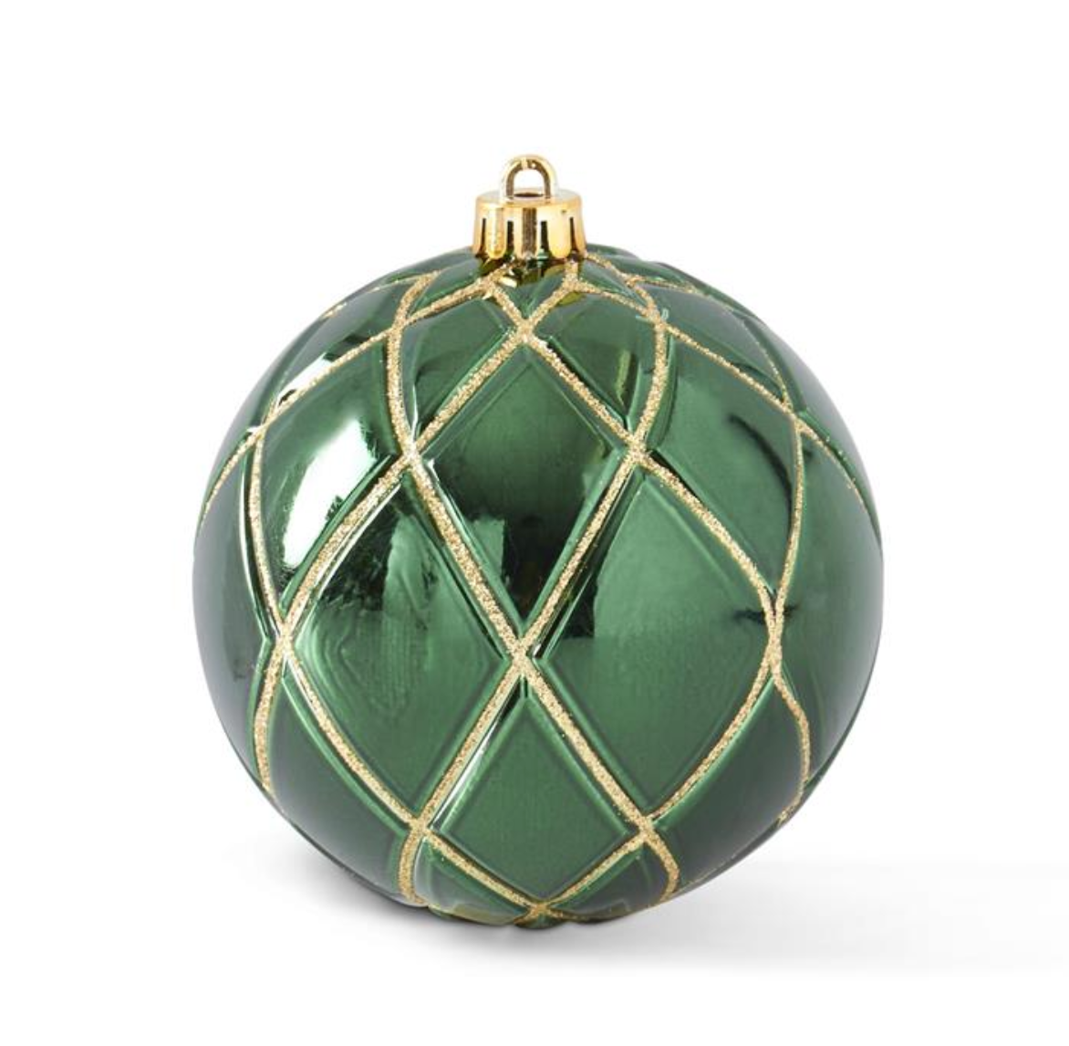 4.75" Green w Gold Glitter Shatterproof Ornament
