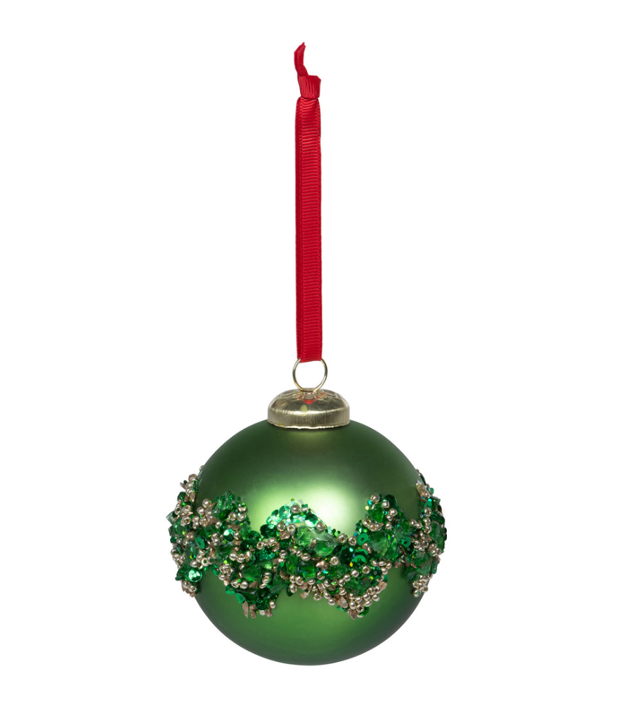 Bejeweled Green Glass Ball Ornament