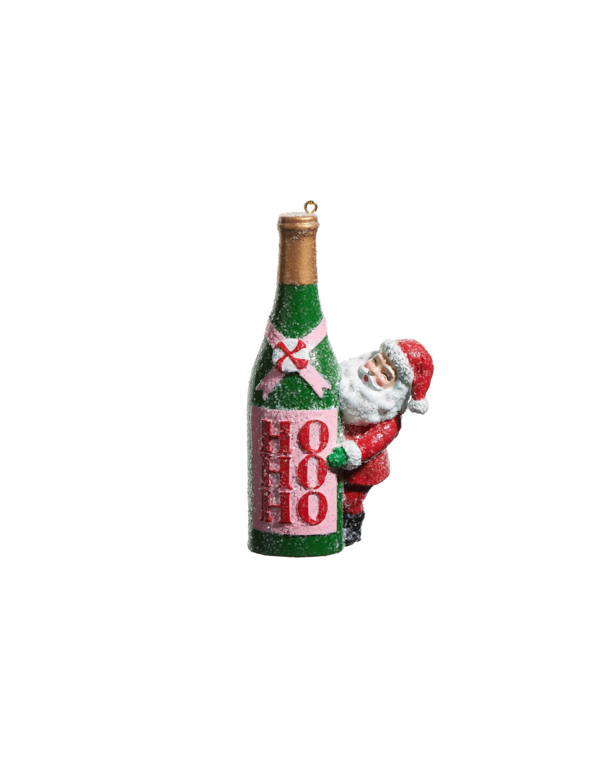 Add a dash of holiday magic with our Bottled Cheer Christmas Ornament featuring Santa perched atop a sparkling champagne bottle. This playful decoration brings festive fun and a toast-worthy spirit to your tree, making every glance a cheerful celebration.