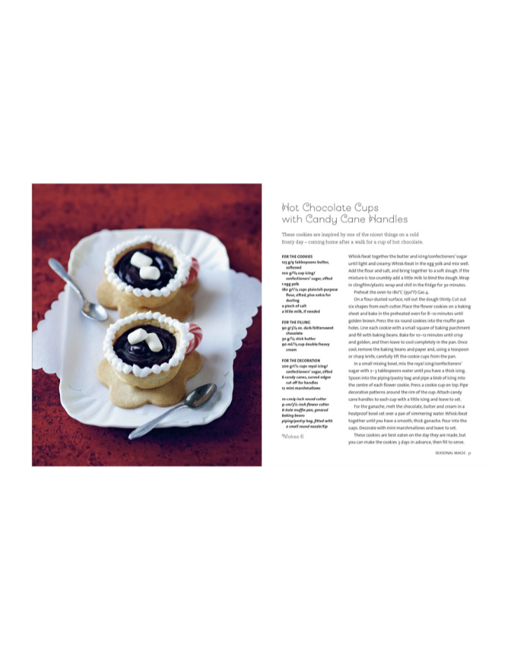 Decoration hints and tips are followed by recipes for more than 60 different cookies, from Jolly Santas, Coconut Snowballs, Frosted Fir Cones and Hot Chocolate Cookie Cups to Reindeer Pretzel Cookies, and Meringue Snowmen.