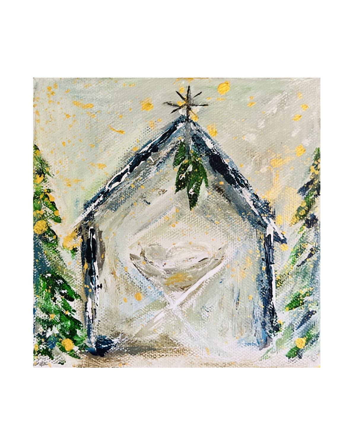 Celebrate the spirit of the season with the 12x12 Manger, a hand-painted canvas. This charming and abstract nativity scene keeps the true meaning of Christmas front and center. Each piece arrives beautifully wrapped with a satin bow, making it a delightful and thoughtful gift. Created by an artist whose passion shines through every brushstroke, this artwork brings faith, creativity, and joy into your holiday décor. Perfect for adding a playful touch that warms the heart during the festive season.
